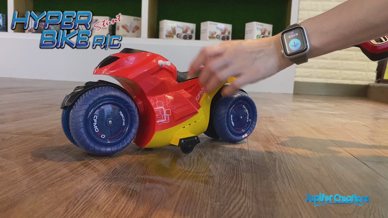 Rev up the excitement with the RC Drift Bike with Vapor FX—a 12-inch stunt-ready motorcycle built for high-speed drifting and eye-catching effects. Its innovative wheels twist horizontally, letting you pull off dramatic side drifts and smooth spins. LED lights on the body and wheels light up your ride, while the vapor FX mist adds a burst of visual flair. Complete with a rechargeable USB battery, this RC bike delivers nonstop, high-energy fun for racing fans and thrill seekers alike.
