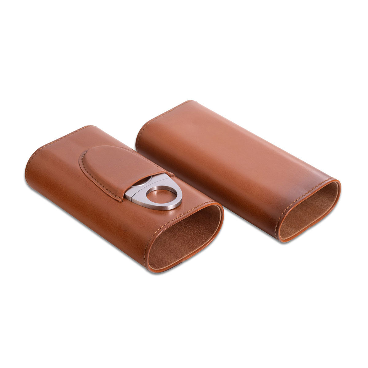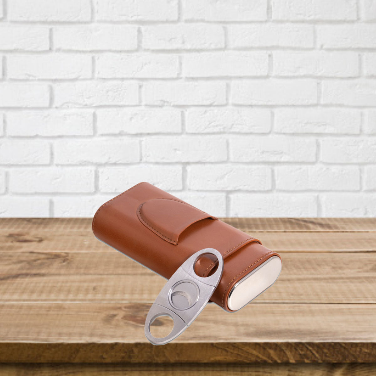 Leather Three Cigar Holder with Stainless Steel Cutter