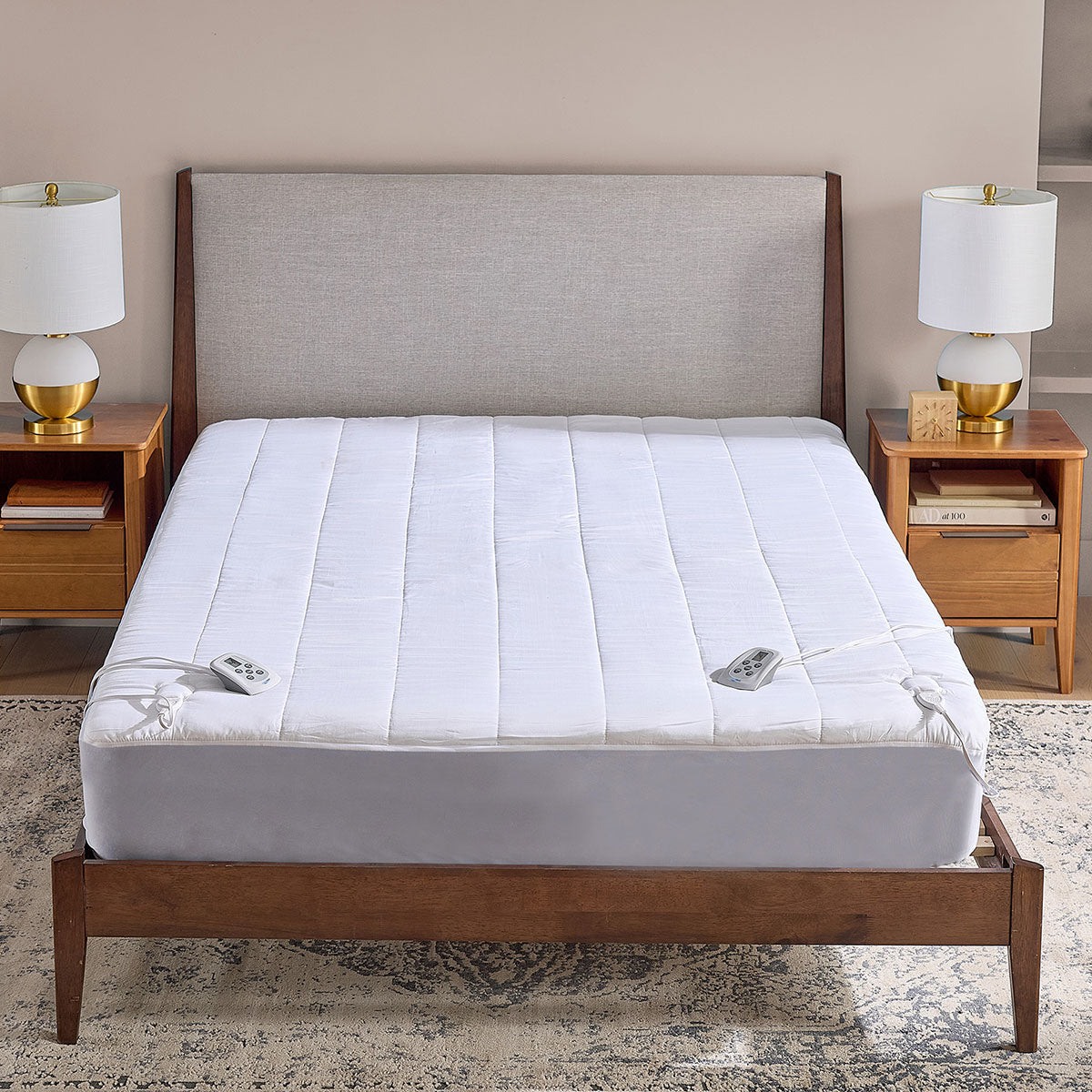 The Dual Zone Heated Mattress Pad brings personalized comfort to every night’s sleep. Designed for full, queen, or king-size beds, it includes two independent controllers so each sleeper can adjust their side to the perfect warmth. With 10 precise heat levels, intelligent temperature control, and a built-in timer ranging from 1 to 12 hours, this pad provides customized comfort while ensuring safety with an automatic shut-off after 10 hours. Made of soft quilted fabric with a plush fill, it adds cushioning and warmth. ETL-certified and machine washable, it’s a practical and cozy addition to your bed, season after season.