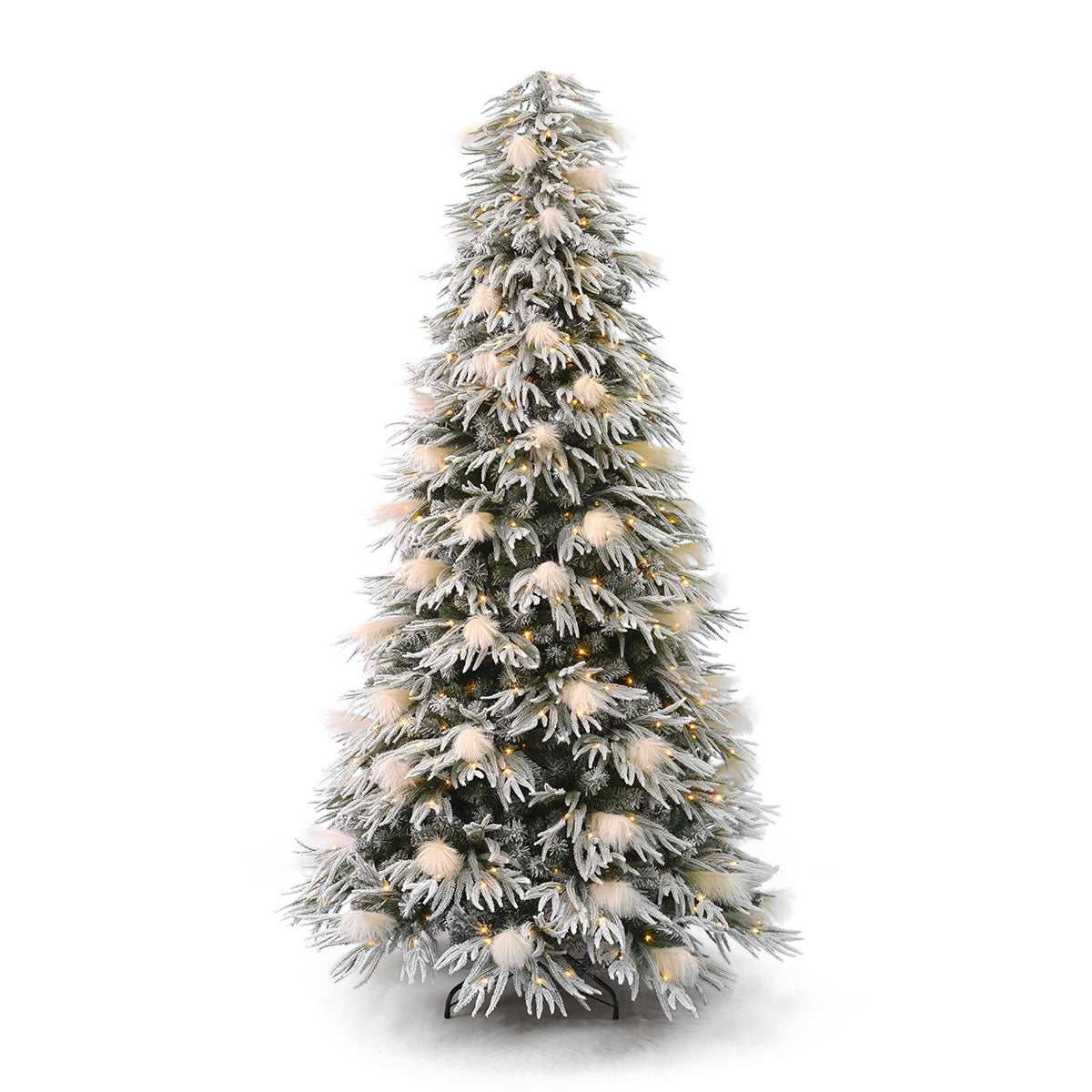 Bring elegant, natural beauty to your holiday décor with the 7.5' Pine and Pampas Christmas Tree. Designed with soft, snow-dusted branches and feathery pampas accents, this lifelike tree offers a serene, modern twist on traditional Christmas style. The pre-lit warm white LED lights provide a cozy glow, while the innovative EZ-CONNECT™ Power Pole ensures fast, tangle-free setup—no more struggling with separate light strings. Crafted with durable PE and PVC tips for fullness and realism, this tree includes a folding metal stand, remote control, and foot switch for easy operation. Complete with a reinforced storage bag, it’s built for years of festive enjoyment.