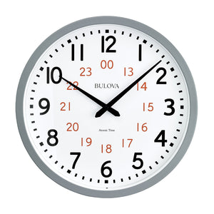 Designed for modern offices and global work environments, the Bulova Reception Clock features three independent timekeeping dials that display both 12- and 24-hour formats for effortless international tracking. The rich ebony-finished veneer adds sophistication, while the glass-covered dials ensure clarity and durability. The versatile frame can be hung horizontally or vertically, and included blank plates let you label each time zone for maximum personalization. With accurate quartz movement, this clock brings function and polished style to any reception area or workspace.