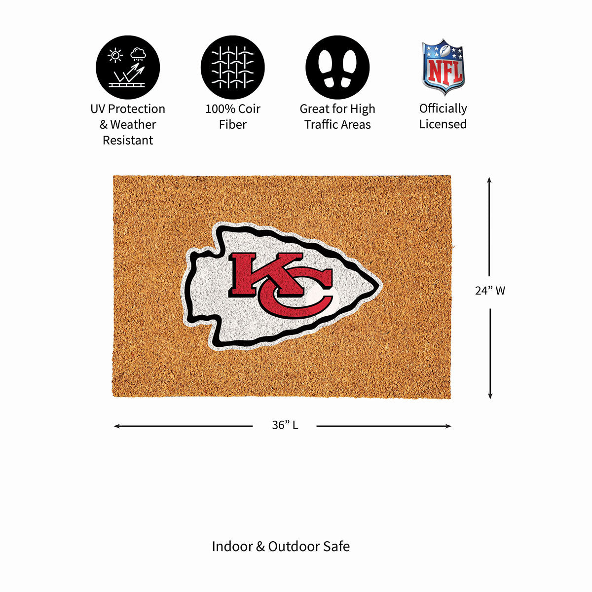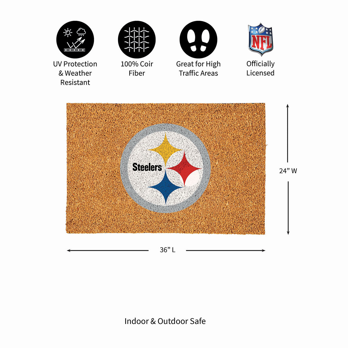 Celebrate your favorite team every time you walk through the door. This officially licensed coir mat features bold team colors and logo in a spacious 24'' x 36'' format, ideal for making a statement at your entryway, office, or fan zone. Made of durable natural coir and proudly printed in the USA, it's a must-have for superfans who want to show off their team loyalty in style.