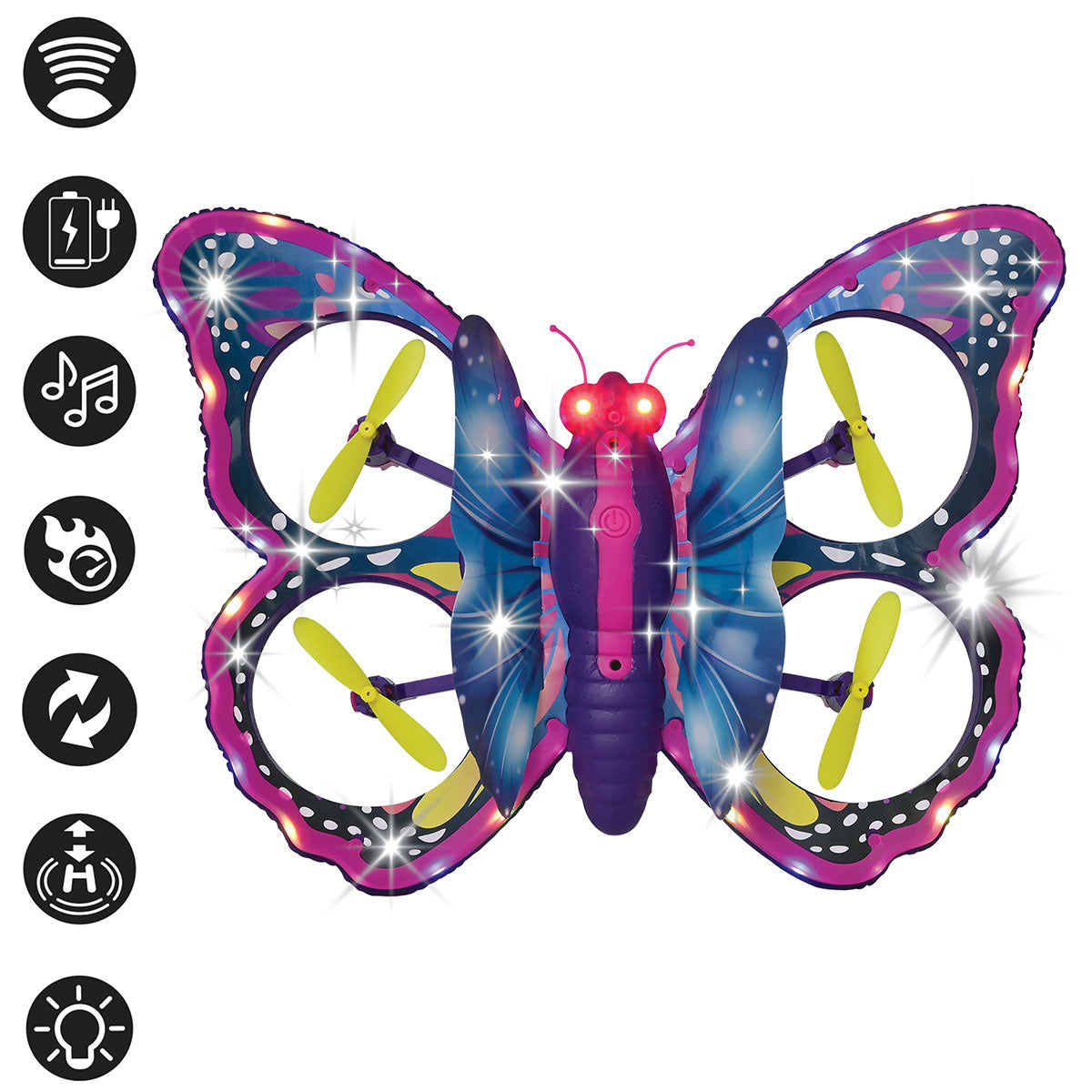 Take flight with the RC Flying Butterfly, your ultimate airborne companion. Use the intuitive gesture control remote or tilt the controller for multidirectional movement. With headless mode, the butterfly easily finds its way back to the pilot, no matter its orientation. Its built-in detection system helps avoid obstacles within a 1-meter range, while four propellers ensure smooth, stable flights. Perform exciting aerial stunts and light up the sky with vibrant LED lights for a spectacular flying experience indoors or outdoors.