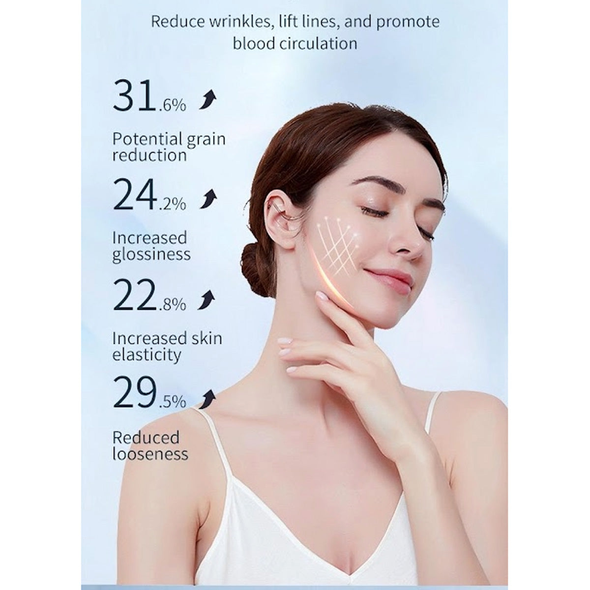 - Microcurrent technology supports collagen and elastin production
