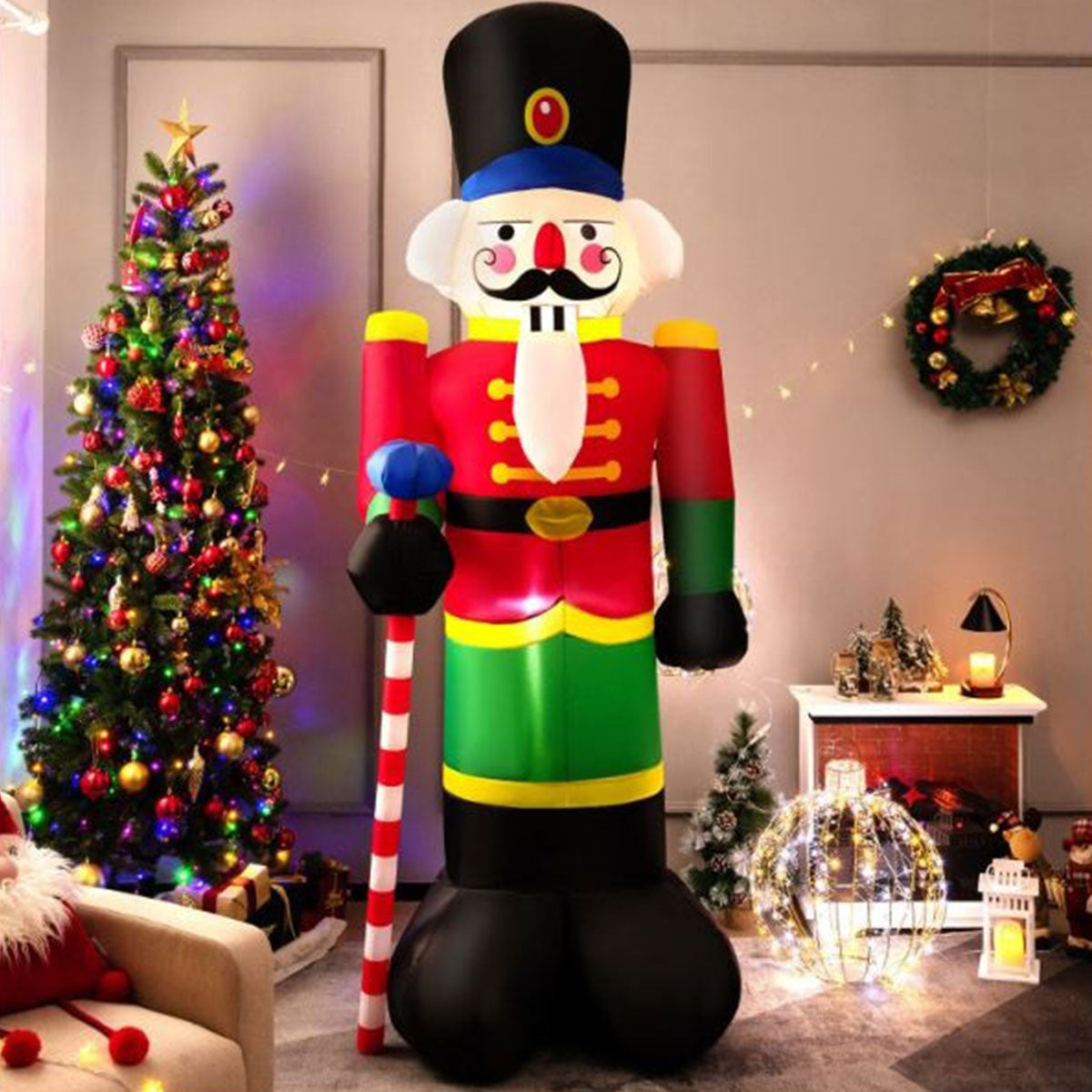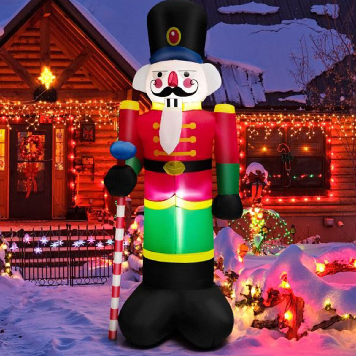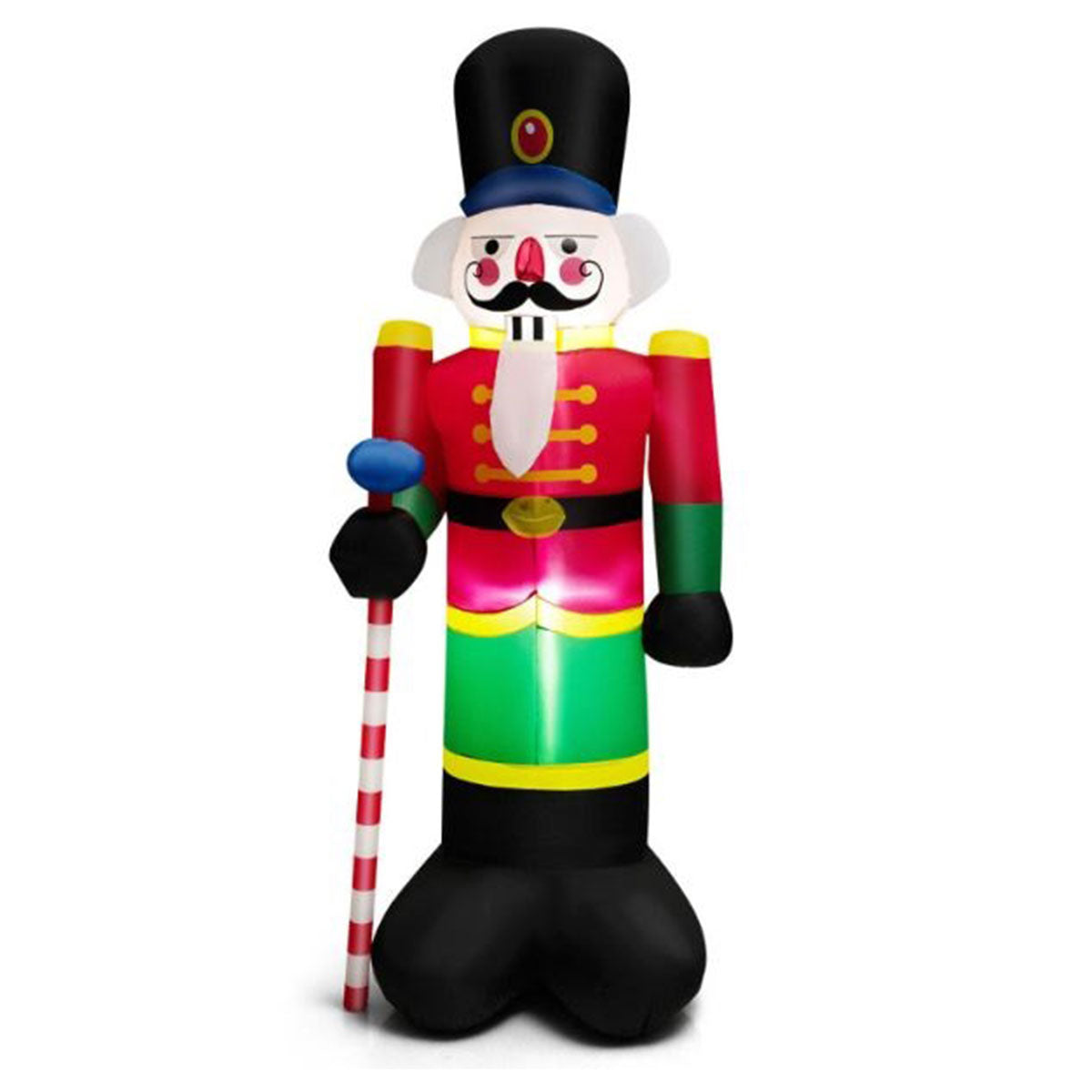 The 8-Ft. Inflatable Nutcracker Soldier stands guard indoors or outdoor to create a festive holiday atmosphere. Built-in LEDs illuminate him from within for day or nighttime use.