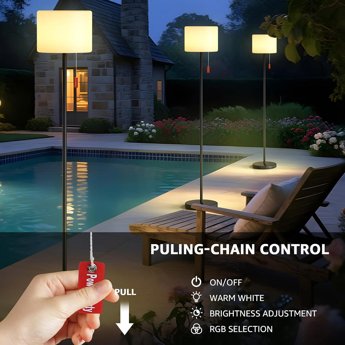 Bring versatile lighting anywhere with this solar rechargeable LED floor lamp, designed for both indoor and outdoor use. Powered by sunlight or USB charging, it delivers up to 6 hours of illumination while automatically turning on at dusk. Choose from vibrant RGB colors, warm white light, or a flickering candle mode to match any mood or setting. The cordless, adjustable-height design makes placement effortless, while the durable, weather-resistant build ensures reliable performance on patios, decks, gardens, or inside your home.