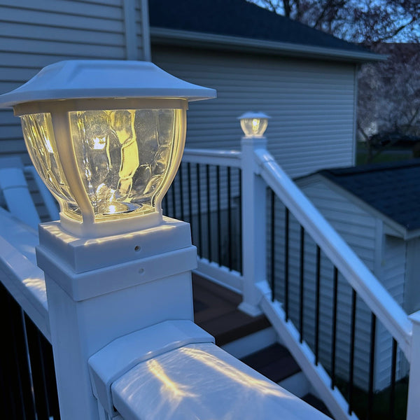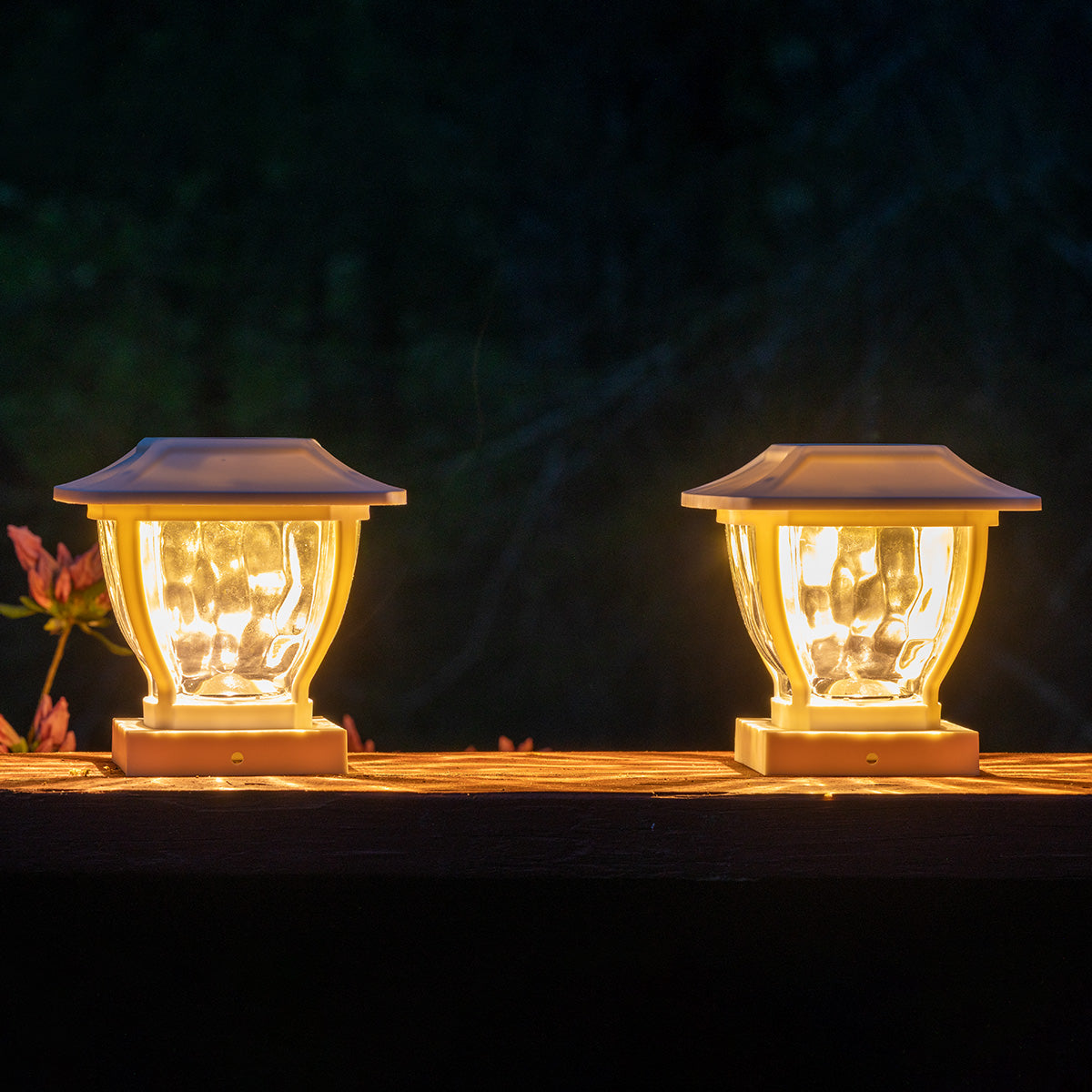 Illuminate your outdoor spaces in style with wave-style solar post cap lights. Designed to fit standard 4x4 posts, these elegant fixtures enhance deck railings, fences, and garden posts while adding warm white glow at night for beauty and safety. Powered by the sun, they charge by day and light automatically at dusk, offering up to 8 hours of illumination. Durable glass and plastic construction delivers long-lasting weather-resistant performance with easy, wire-free installation.