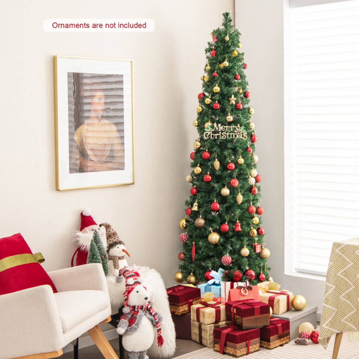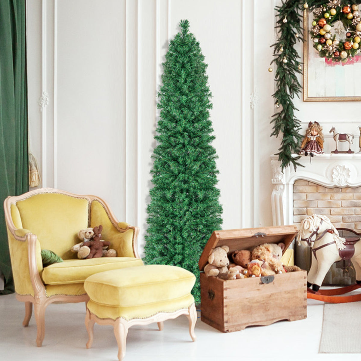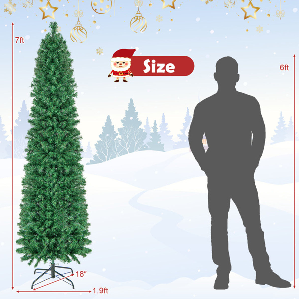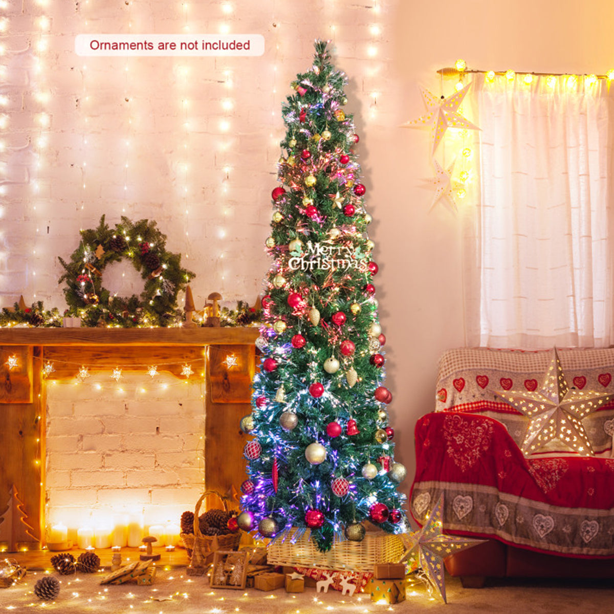 - 7' Pre-lit Artificial Pencil Christmas Tree with Fiber Optics