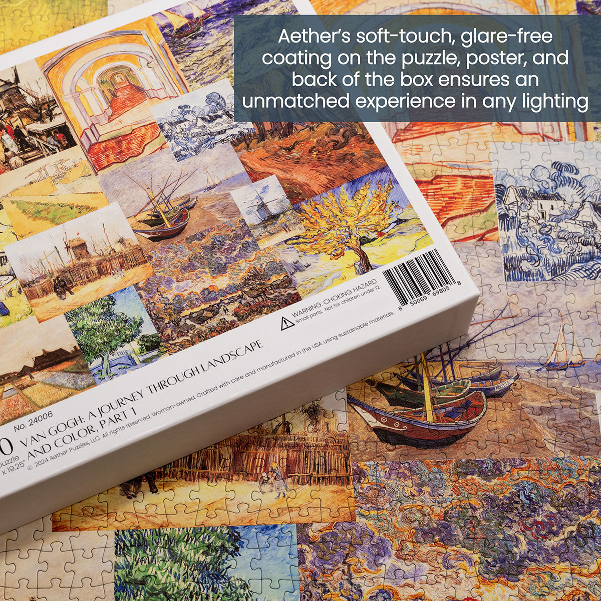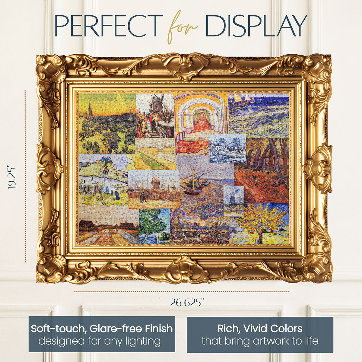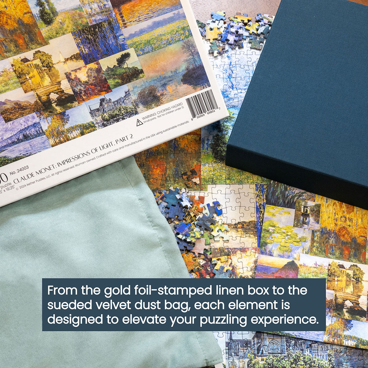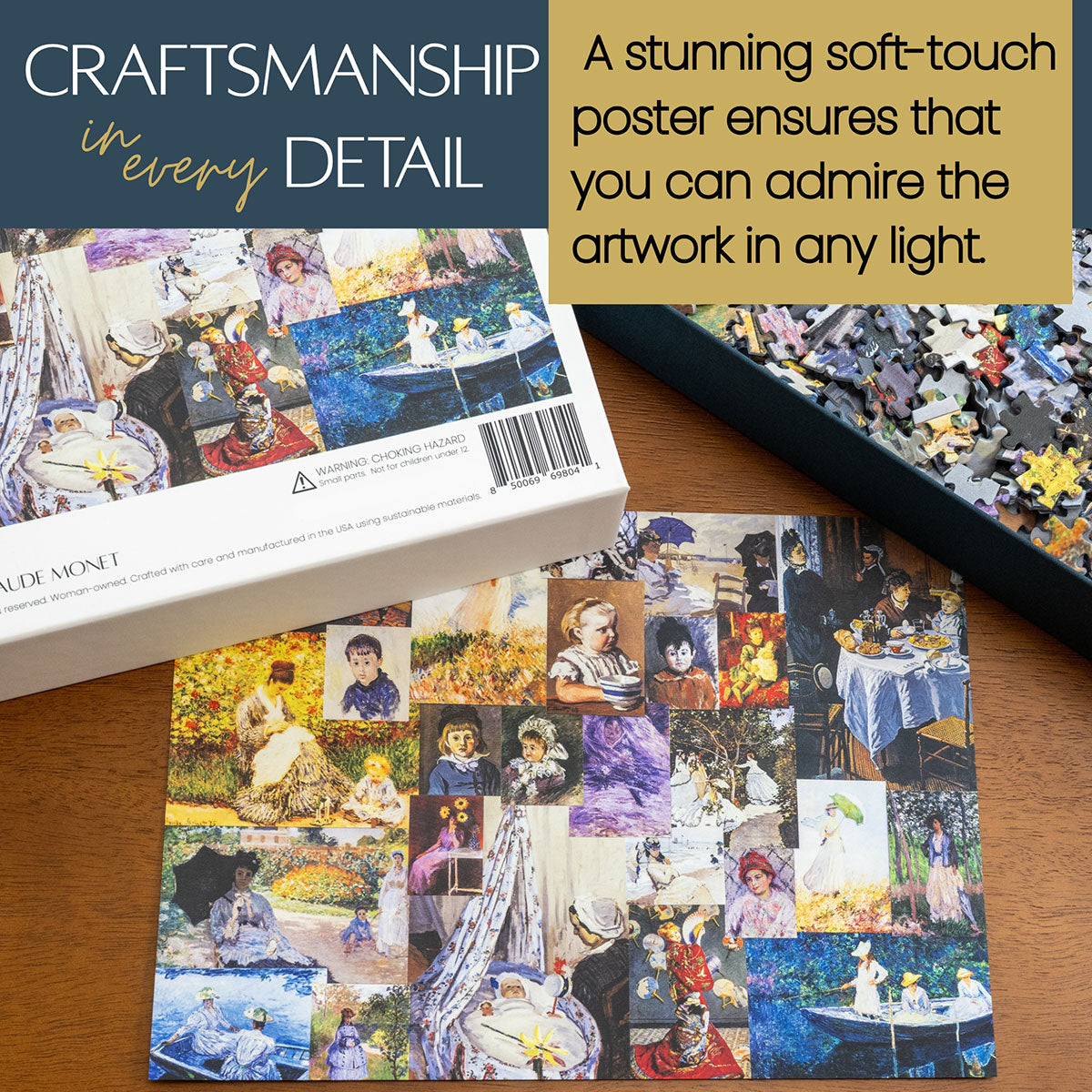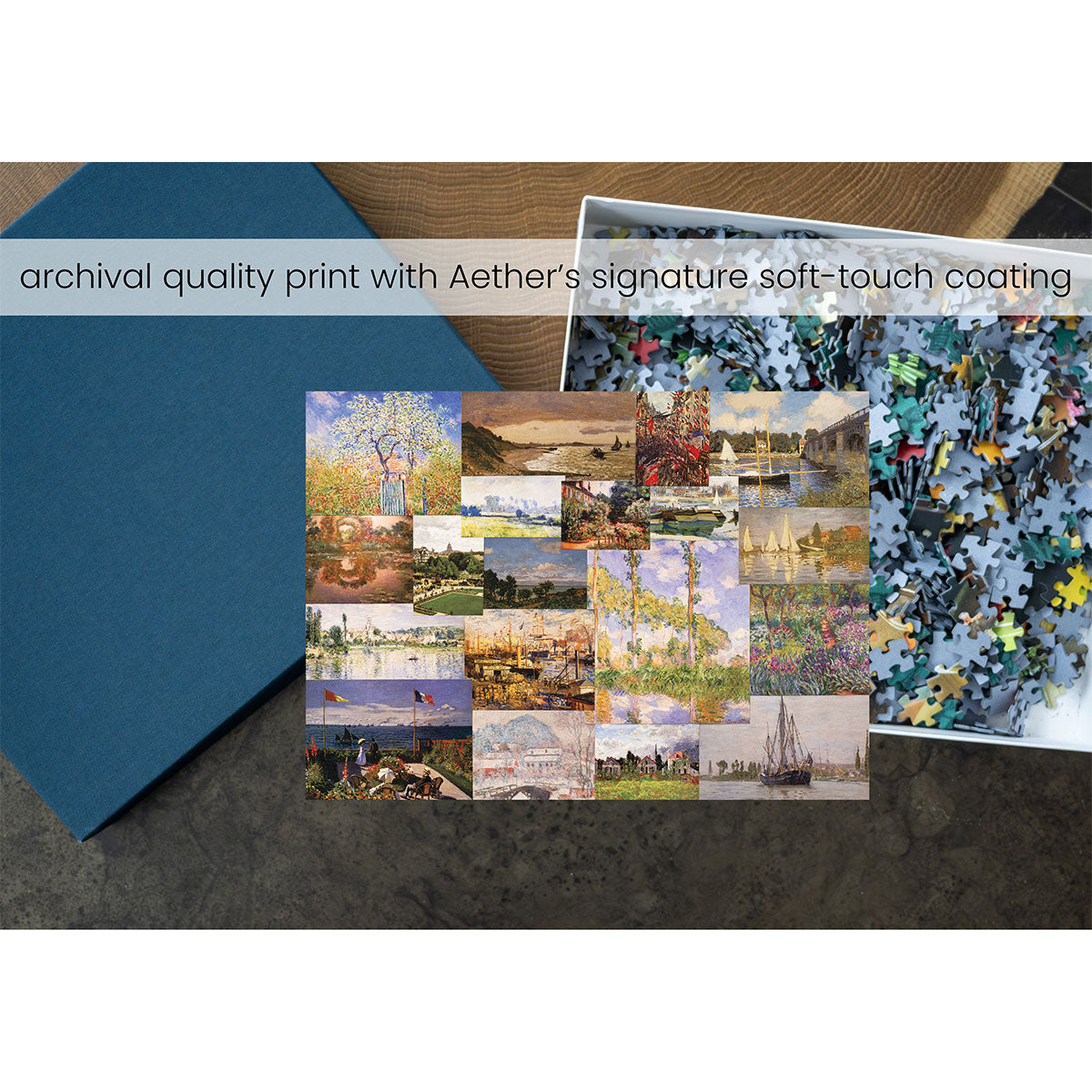 Piece together masterpieces with this collection of 14 museum-quality 1000-piece puzzles that celebrate the greats—from Impressionist light studies to bold post-Impressionist color and masterful portraiture. Each puzzle is cut from thicker durable board and finished with a soft-touch, glare-free coating so details and brushwork read clearly under any light. Packaged in an elegant textured box with a velvet bag and finished art placard, these puzzles elevate puzzling into an artful experience.