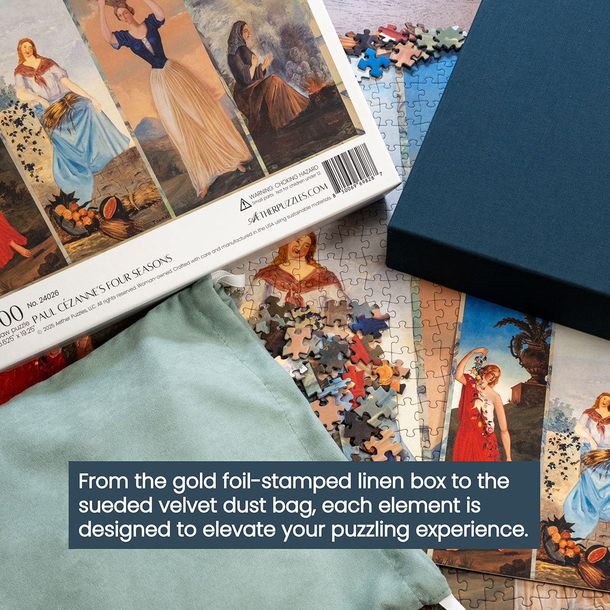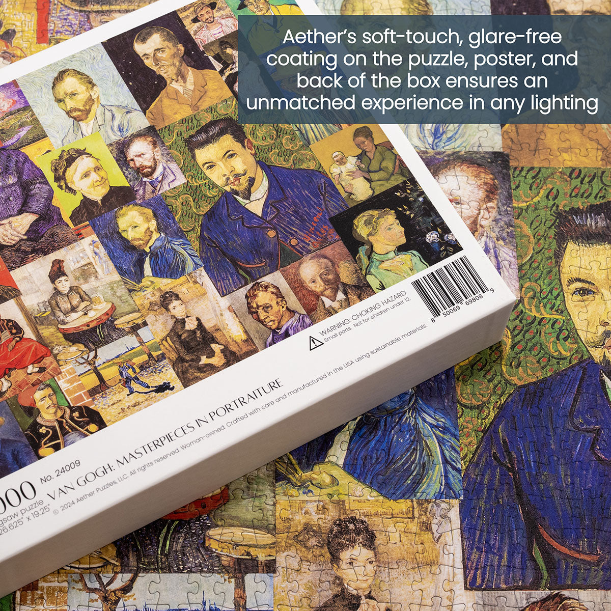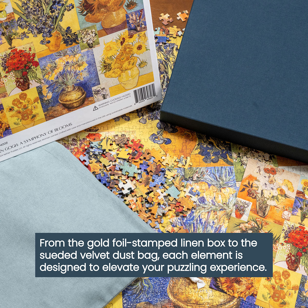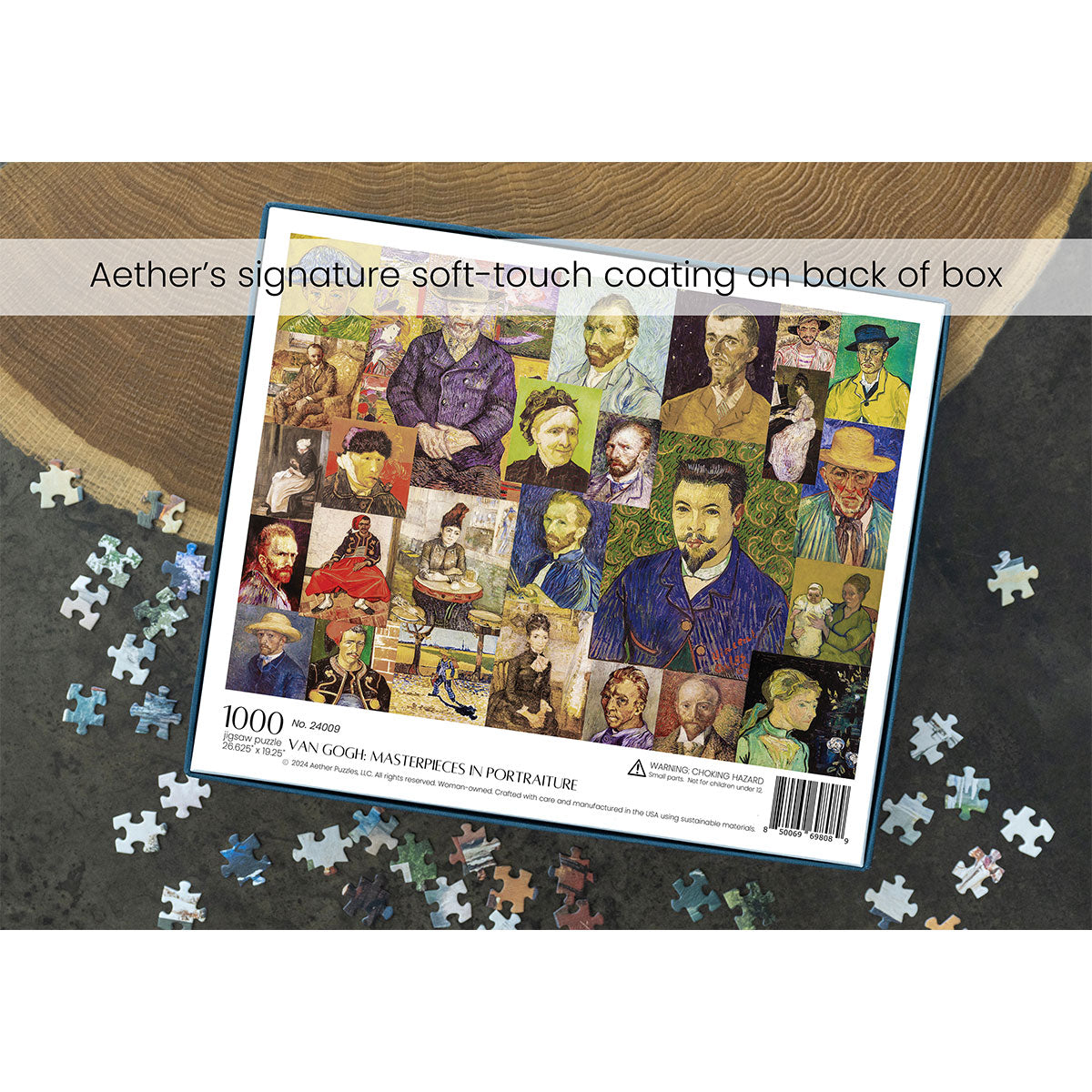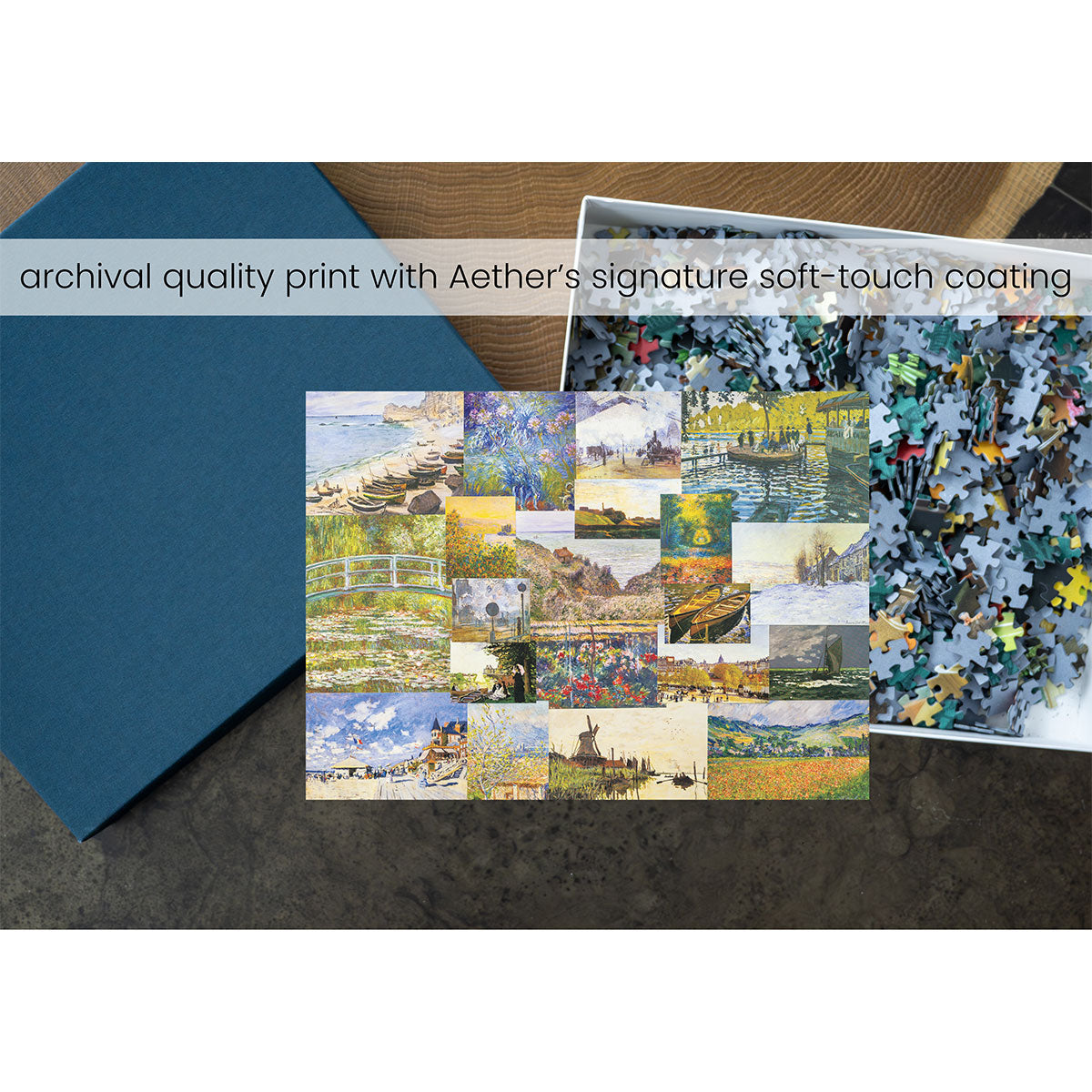 Piece together masterpieces with this collection of 14 museum-quality 1000-piece puzzles that celebrate the greats—from Impressionist light studies to bold post-Impressionist color and masterful portraiture. Each puzzle is cut from thicker durable board and finished with a soft-touch, glare-free coating so details and brushwork read clearly under any light. Packaged in an elegant textured box with a velvet bag and finished art placard, these puzzles elevate puzzling into an artful experience.