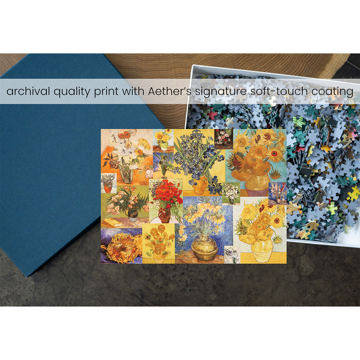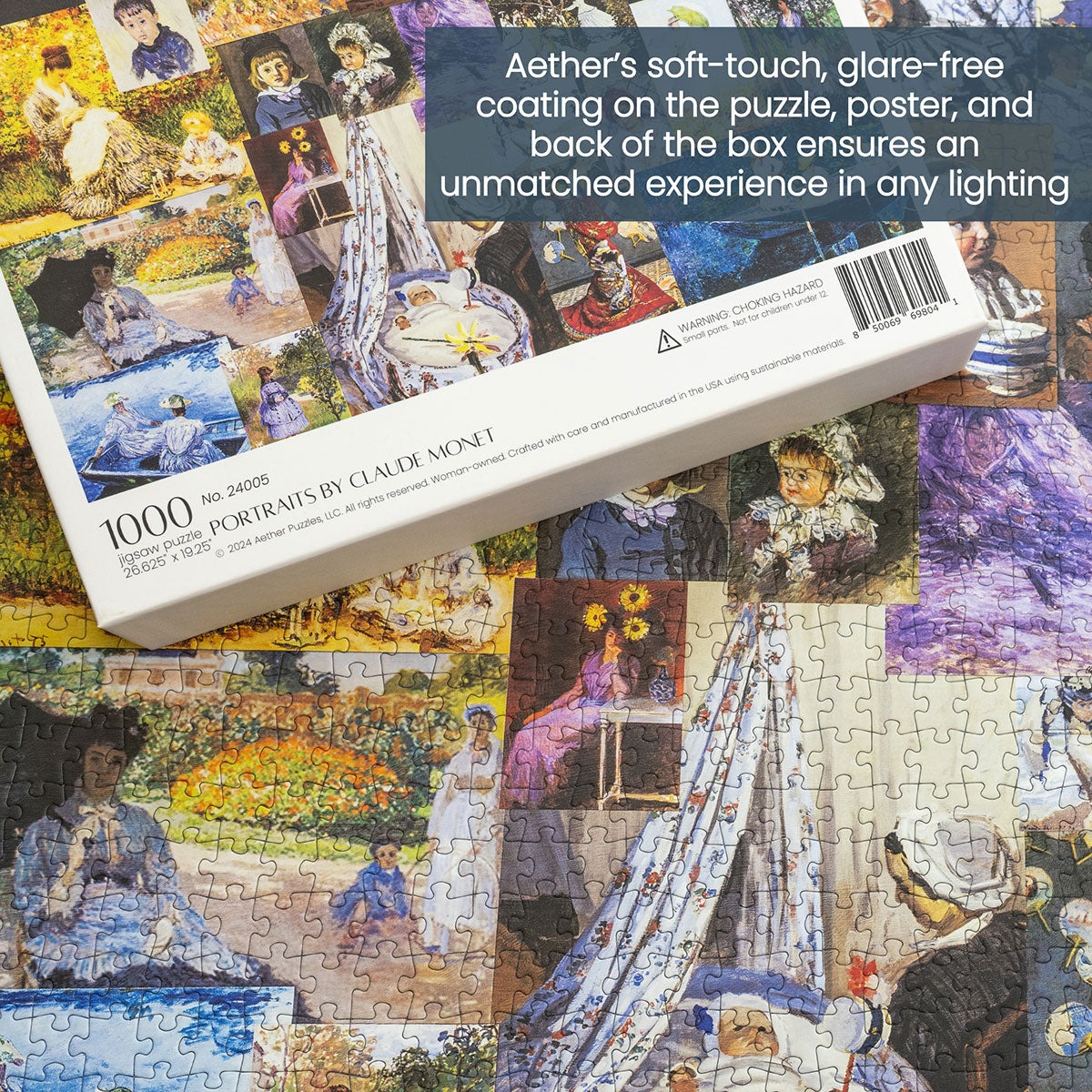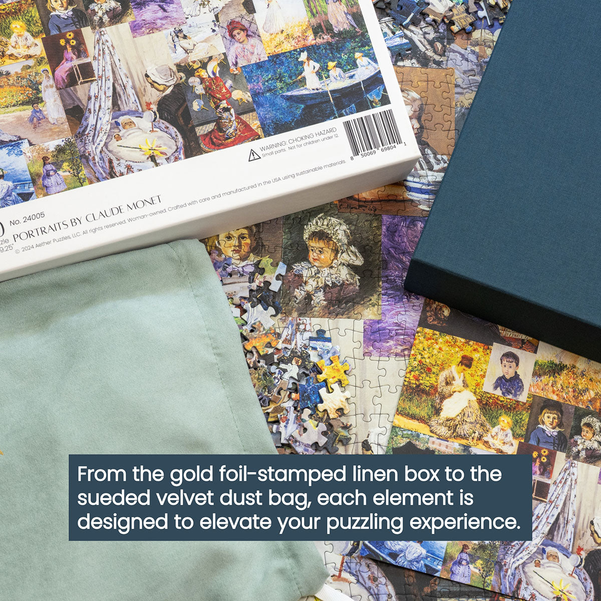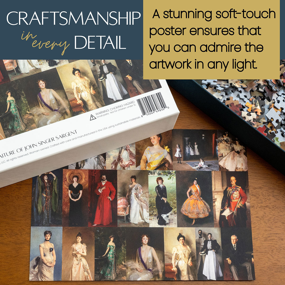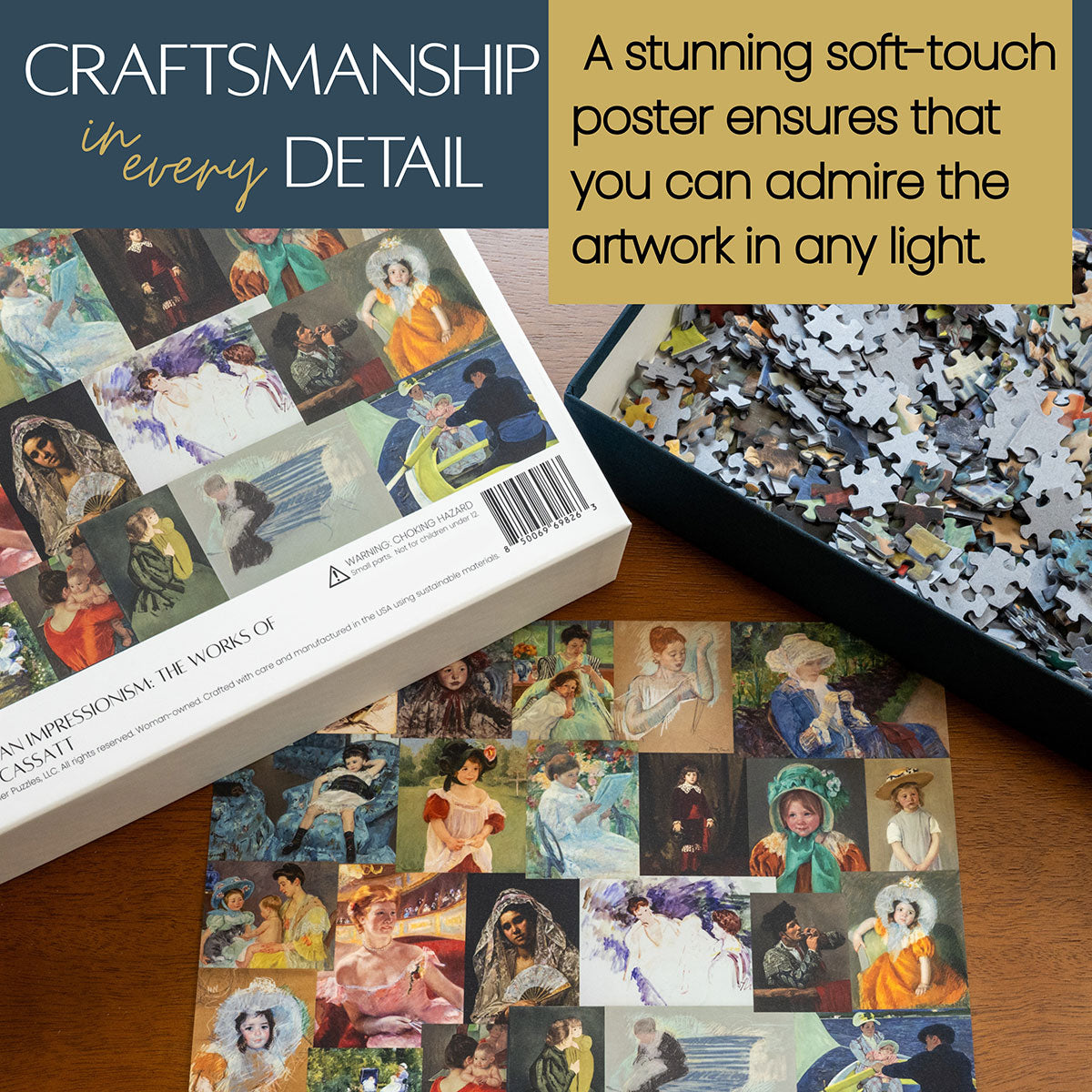 Piece together masterpieces with this collection of 14 museum-quality 1000-piece puzzles that celebrate the greats—from Impressionist light studies to bold post-Impressionist color and masterful portraiture. Each puzzle is cut from thicker durable board and finished with a soft-touch, glare-free coating so details and brushwork read clearly under any light. Packaged in an elegant textured box with a velvet bag and finished art placard, these puzzles elevate puzzling into an artful experience.