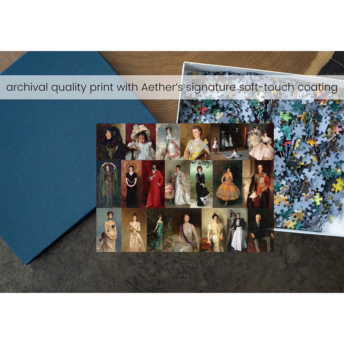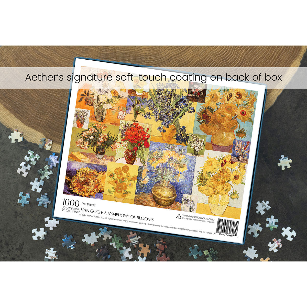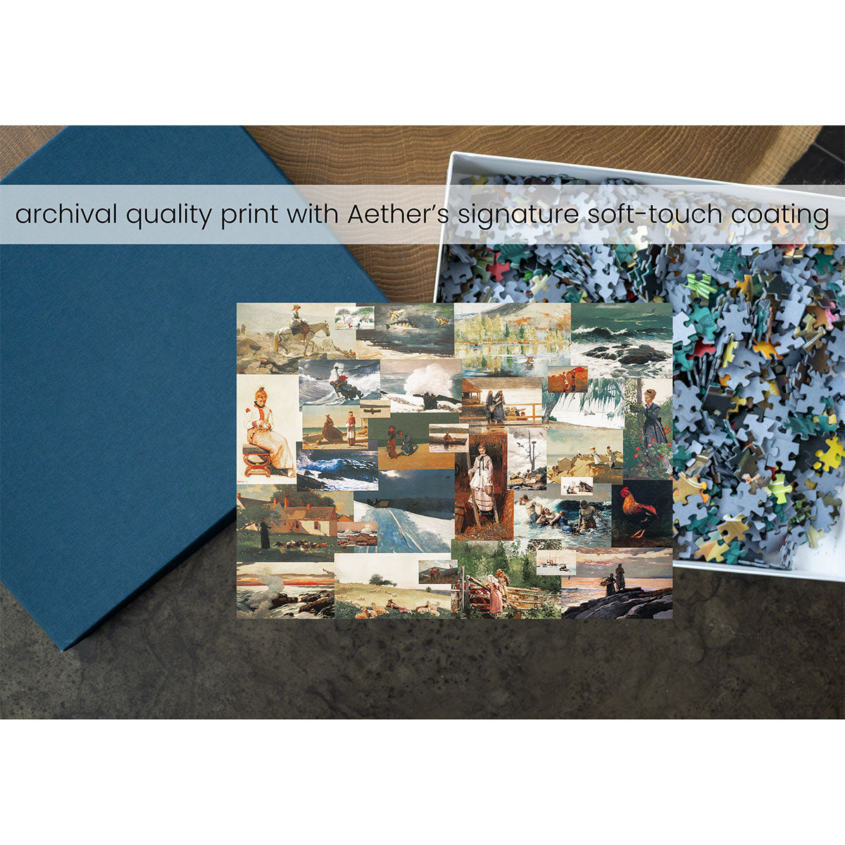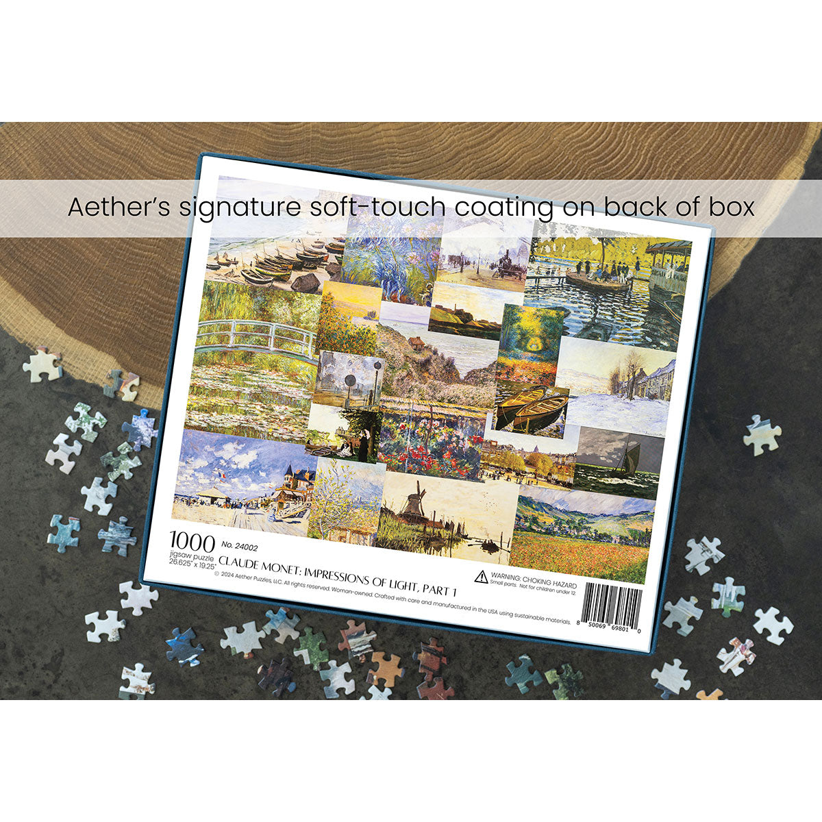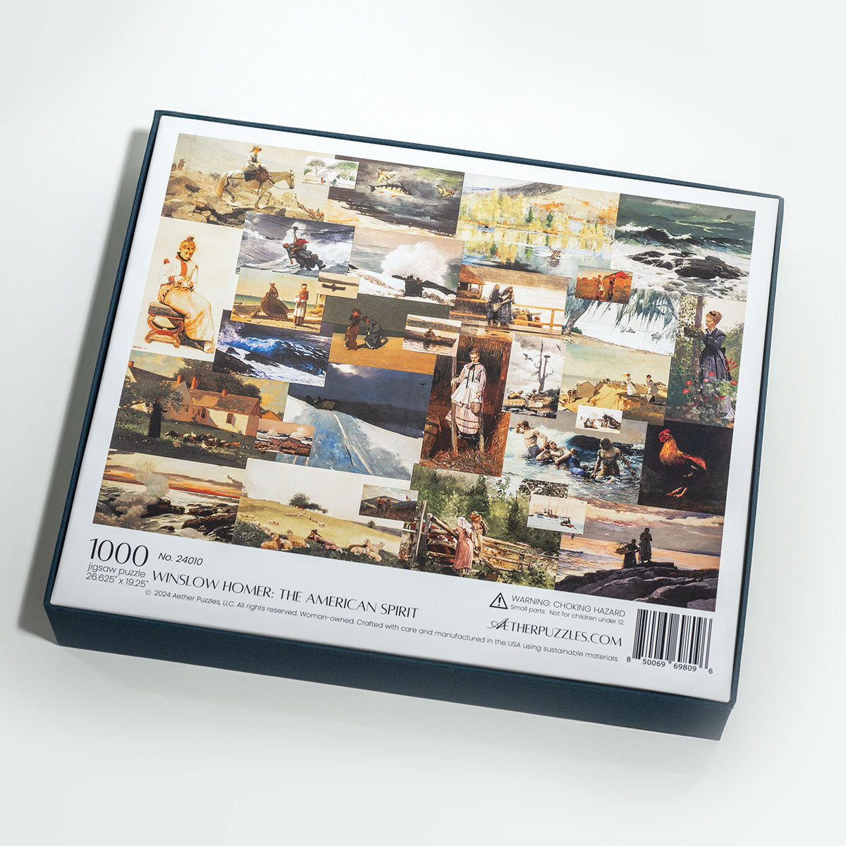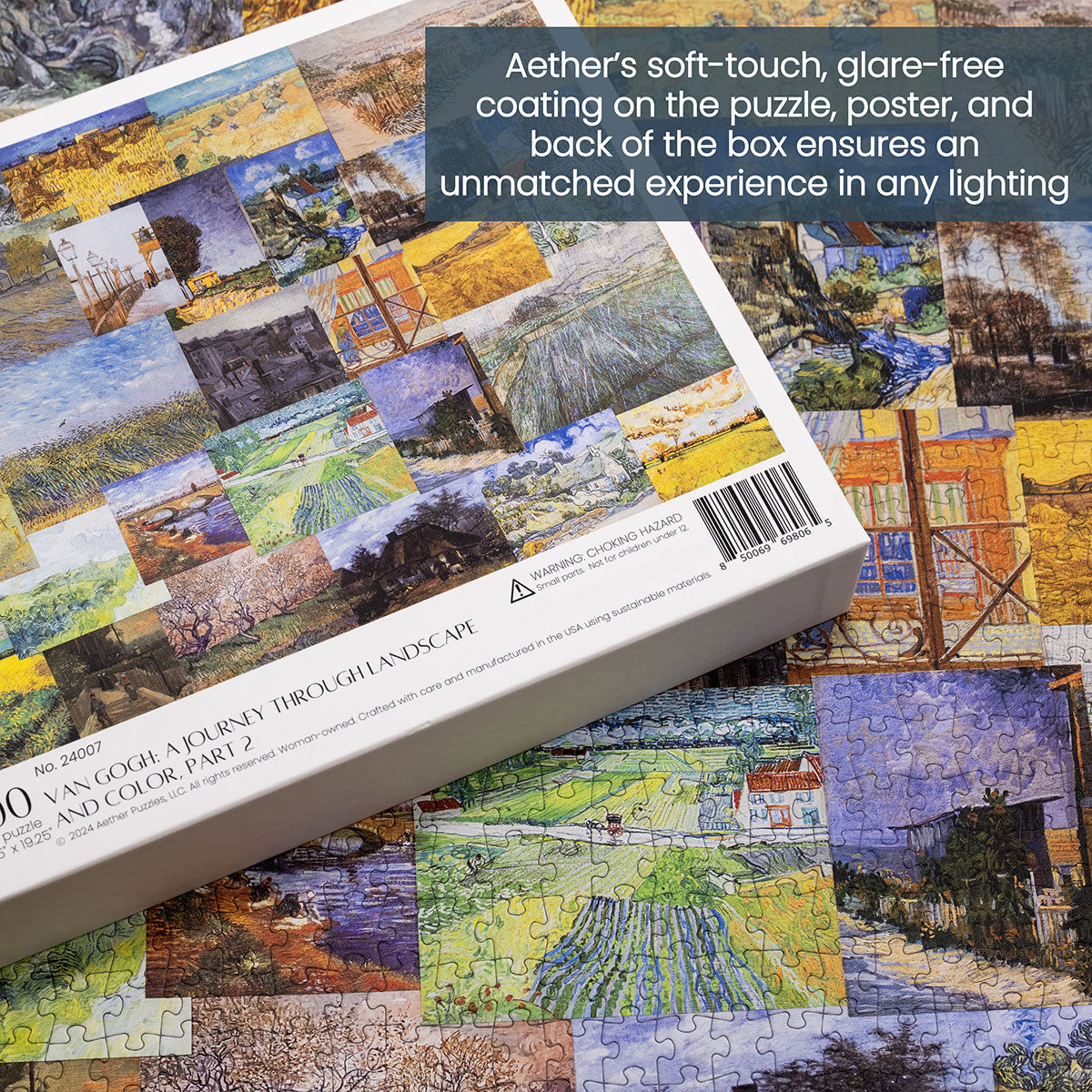 Piece together masterpieces with this collection of 14 museum-quality 1000-piece puzzles that celebrate the greats—from Impressionist light studies to bold post-Impressionist color and masterful portraiture. Each puzzle is cut from thicker durable board and finished with a soft-touch, glare-free coating so details and brushwork read clearly under any light. Packaged in an elegant textured box with a velvet bag and finished art placard, these puzzles elevate puzzling into an artful experience.