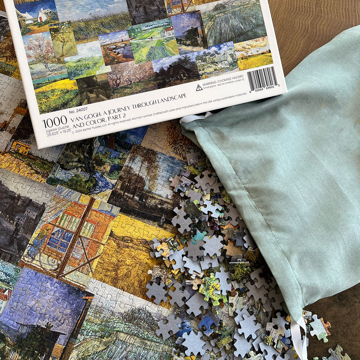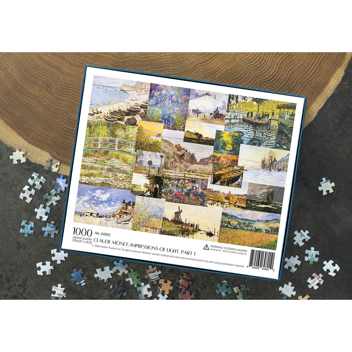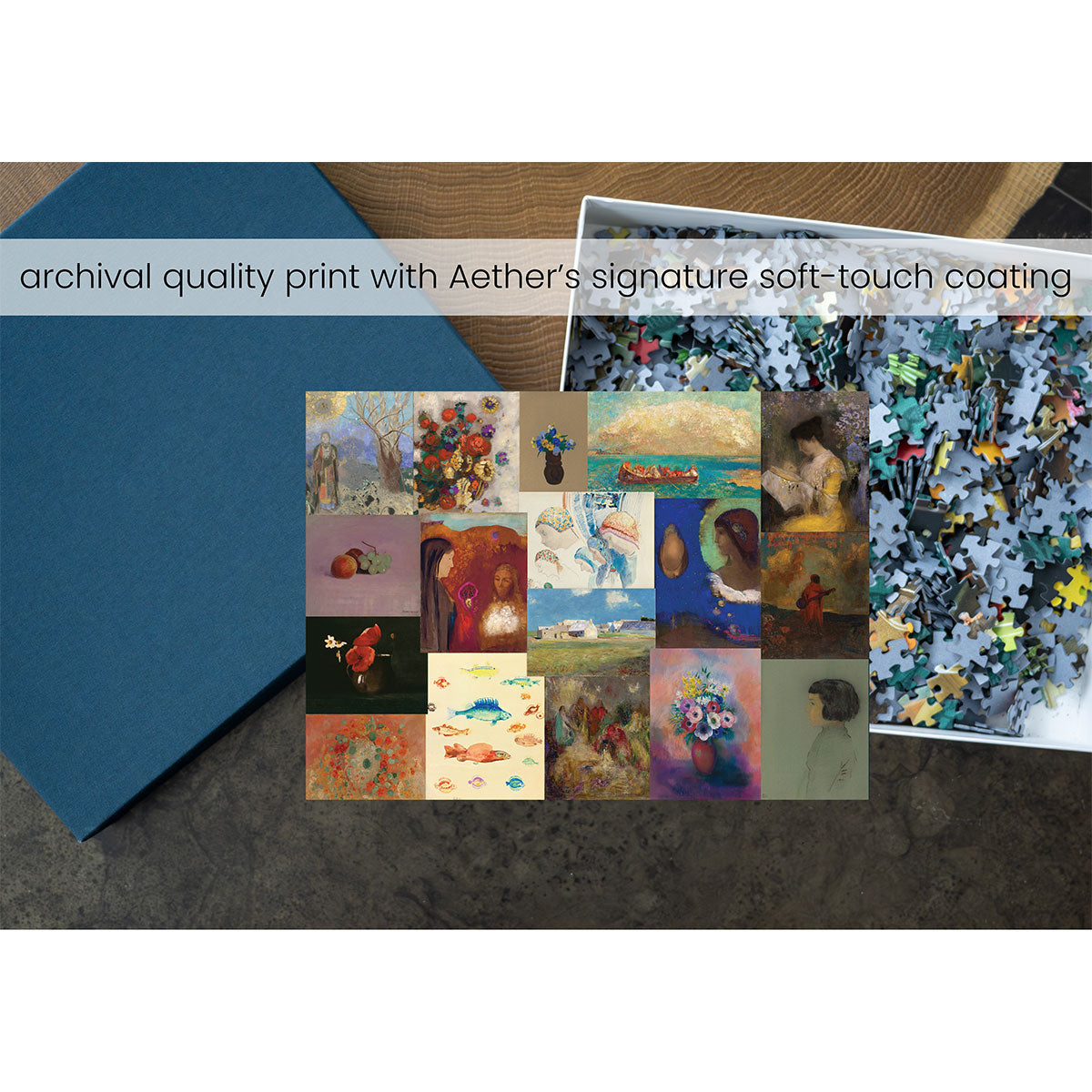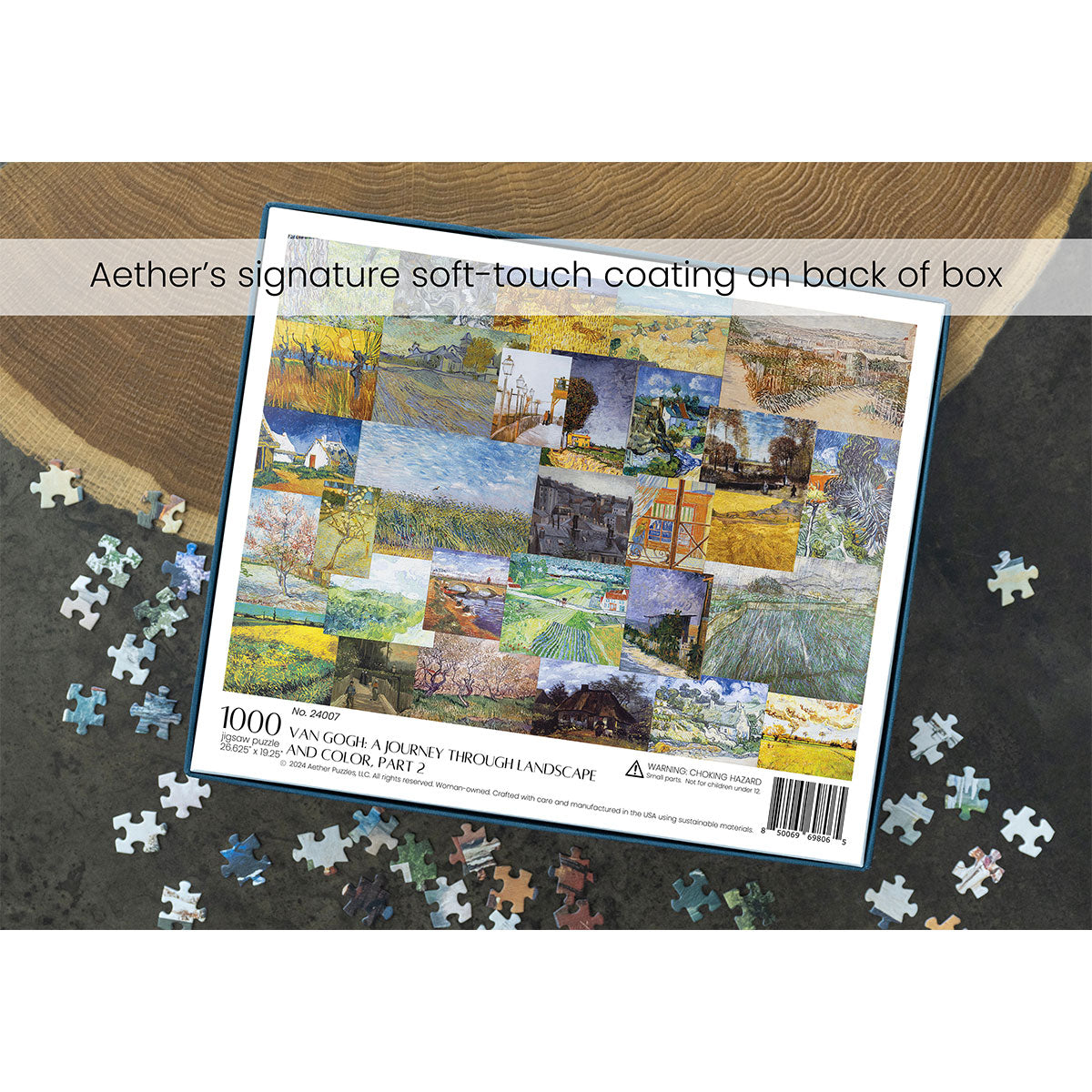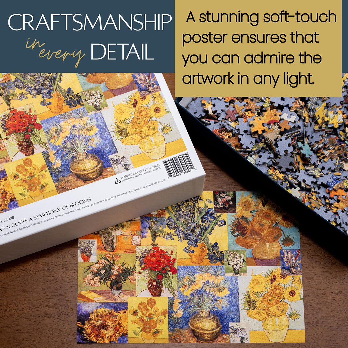 Piece together masterpieces with this collection of 14 museum-quality 1000-piece puzzles that celebrate the greats—from Impressionist light studies to bold post-Impressionist color and masterful portraiture. Each puzzle is cut from thicker durable board and finished with a soft-touch, glare-free coating so details and brushwork read clearly under any light. Packaged in an elegant textured box with a velvet bag and finished art placard, these puzzles elevate puzzling into an artful experience.