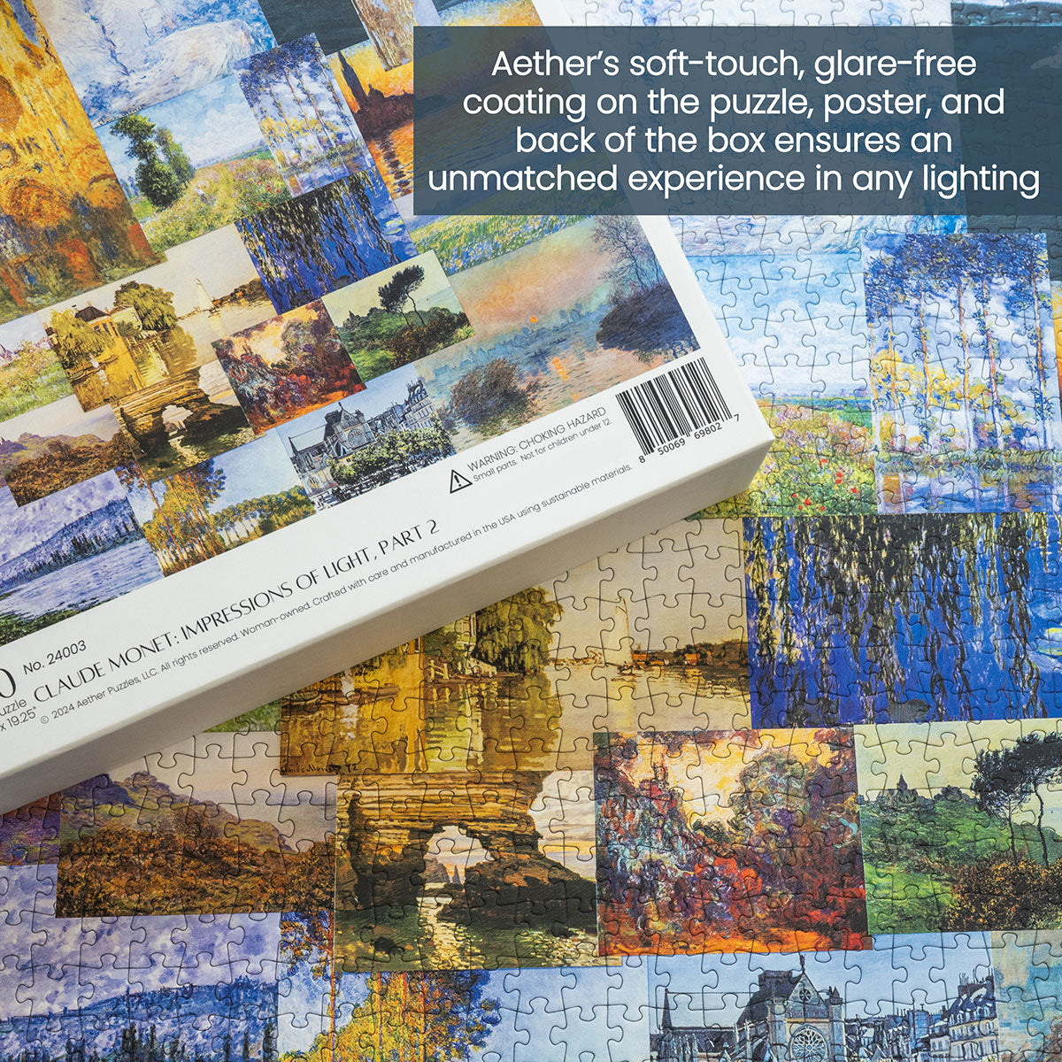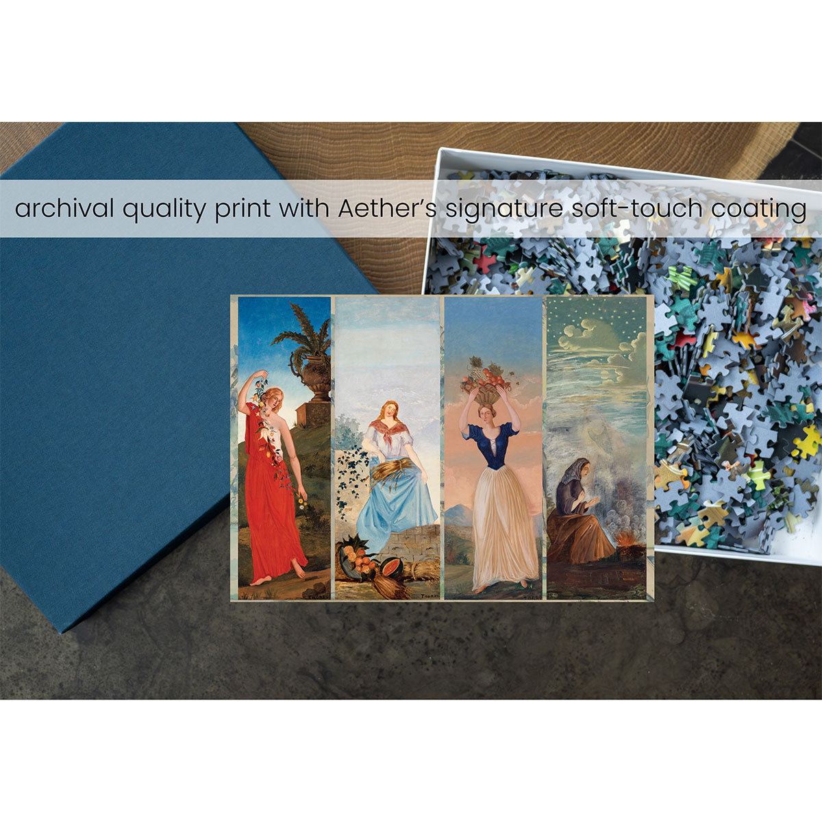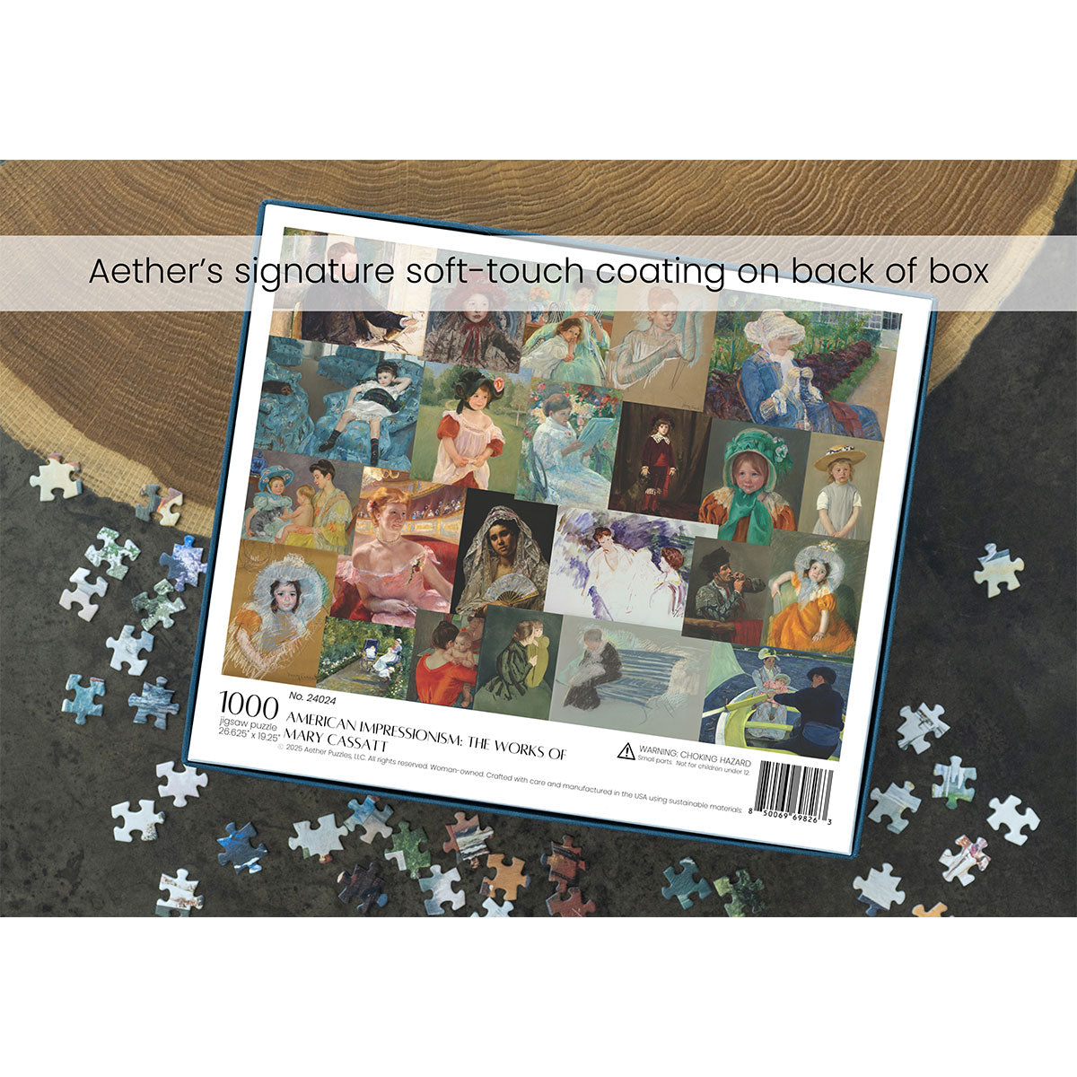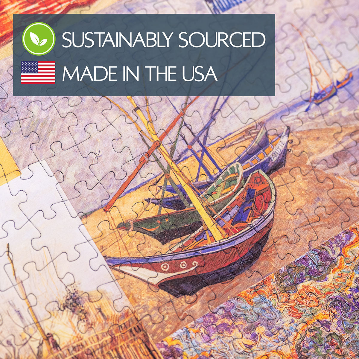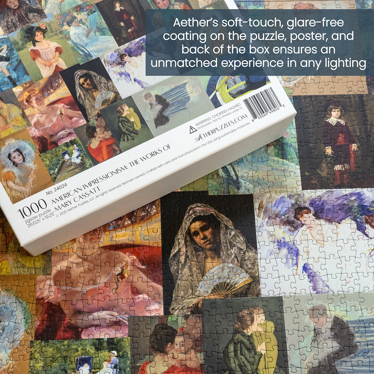 Piece together masterpieces with this collection of 14 museum-quality 1000-piece puzzles that celebrate the greats—from Impressionist light studies to bold post-Impressionist color and masterful portraiture. Each puzzle is cut from thicker durable board and finished with a soft-touch, glare-free coating so details and brushwork read clearly under any light. Packaged in an elegant textured box with a velvet bag and finished art placard, these puzzles elevate puzzling into an artful experience.