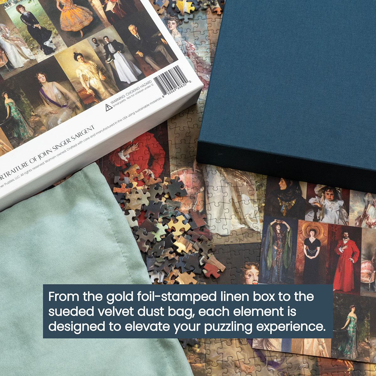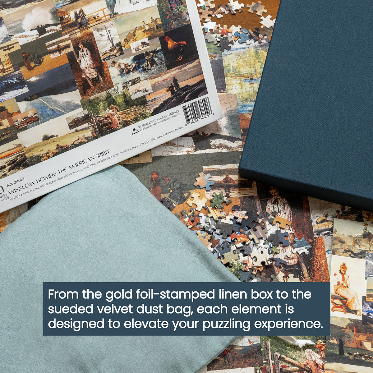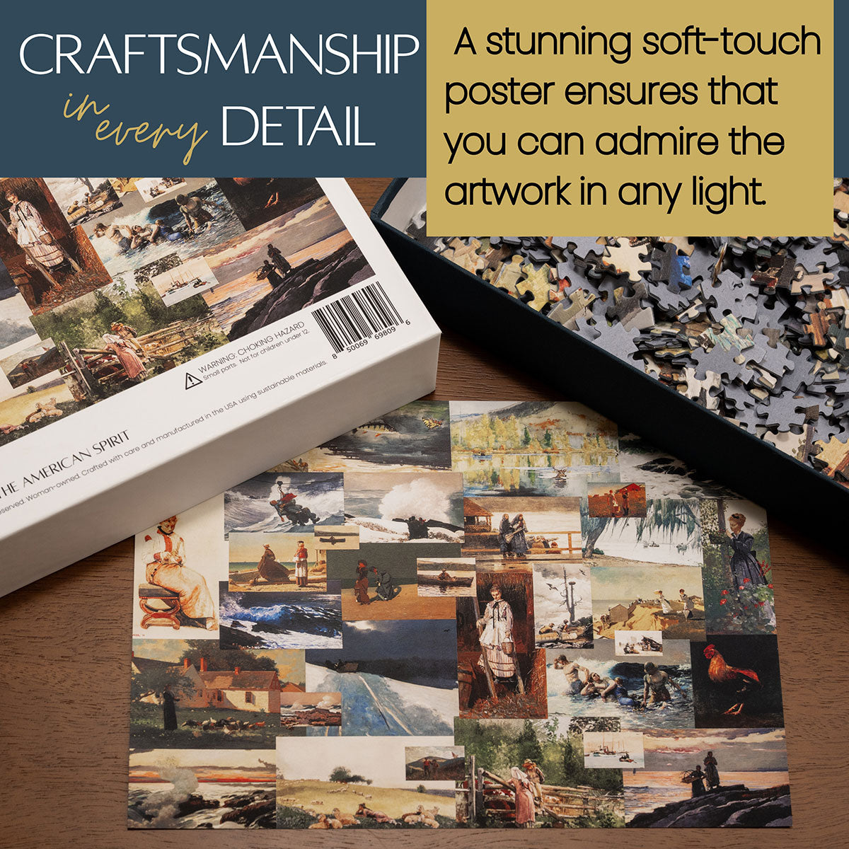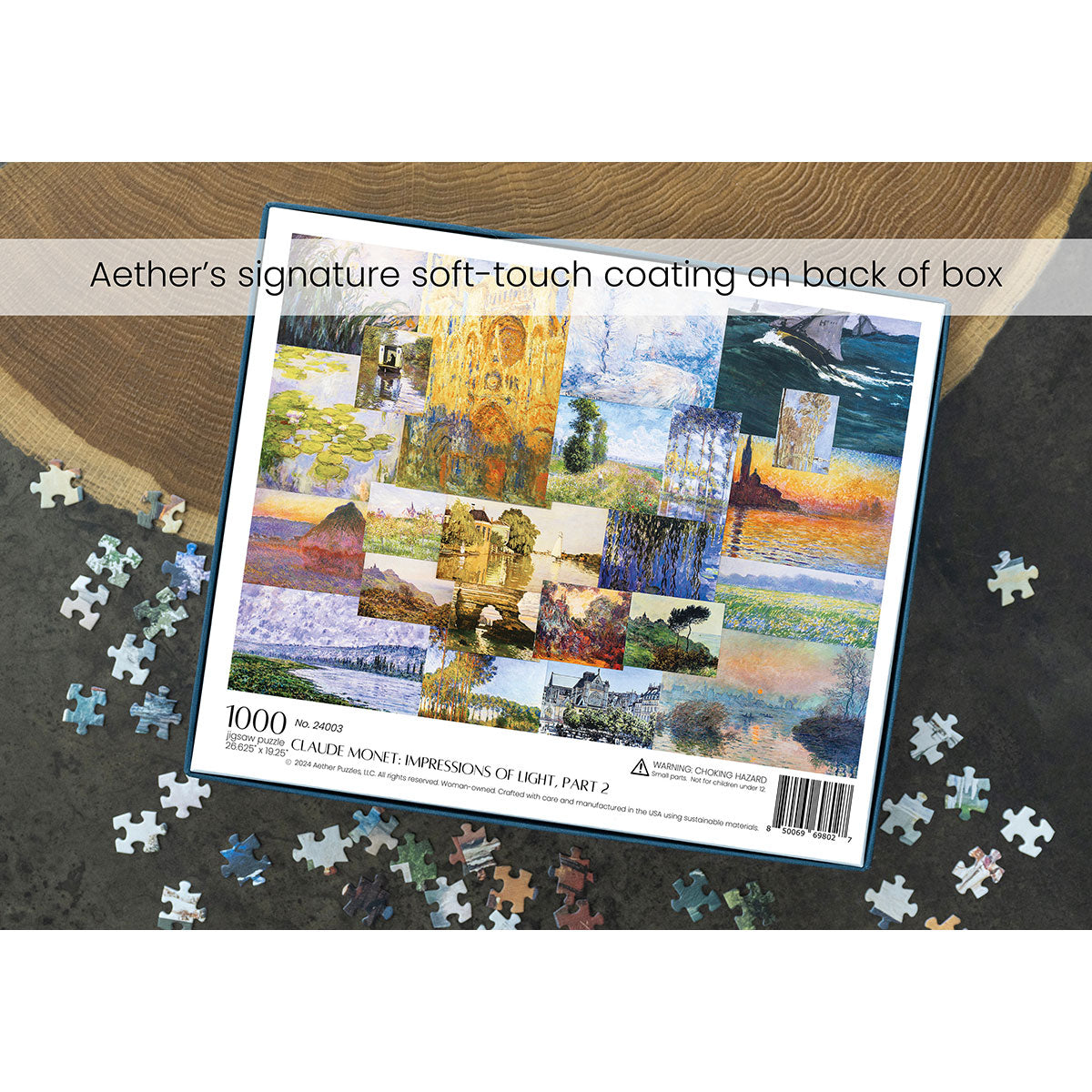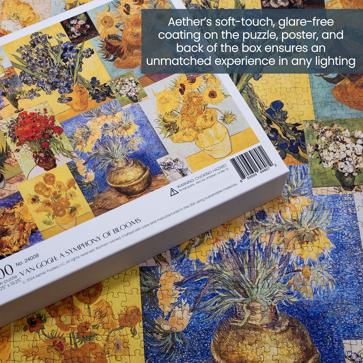 Piece together masterpieces with this collection of 14 museum-quality 1000-piece puzzles that celebrate the greats—from Impressionist light studies to bold post-Impressionist color and masterful portraiture. Each puzzle is cut from thicker durable board and finished with a soft-touch, glare-free coating so details and brushwork read clearly under any light. Packaged in an elegant textured box with a velvet bag and finished art placard, these puzzles elevate puzzling into an artful experience.