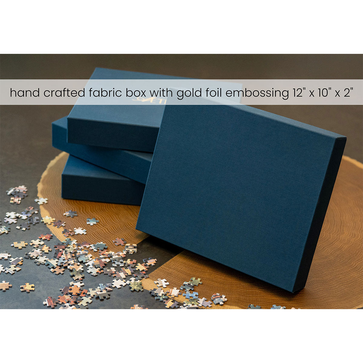 - Premium textured fabric box with gold foil embossing