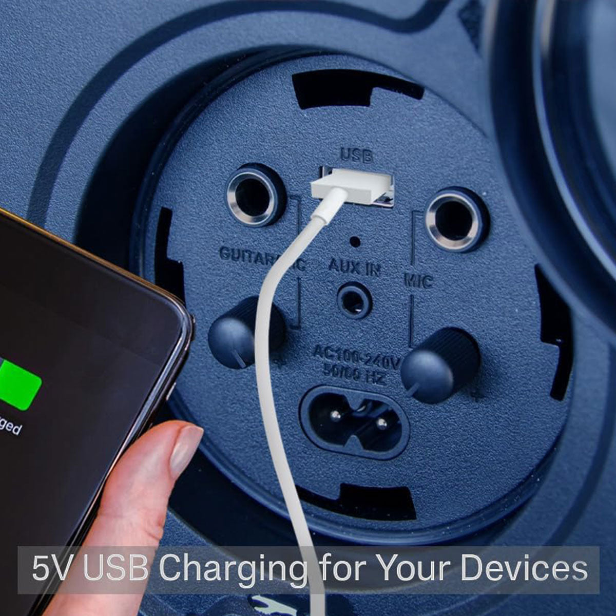- Multiple input options: Bluetooth, aux, USB, mic, guitar