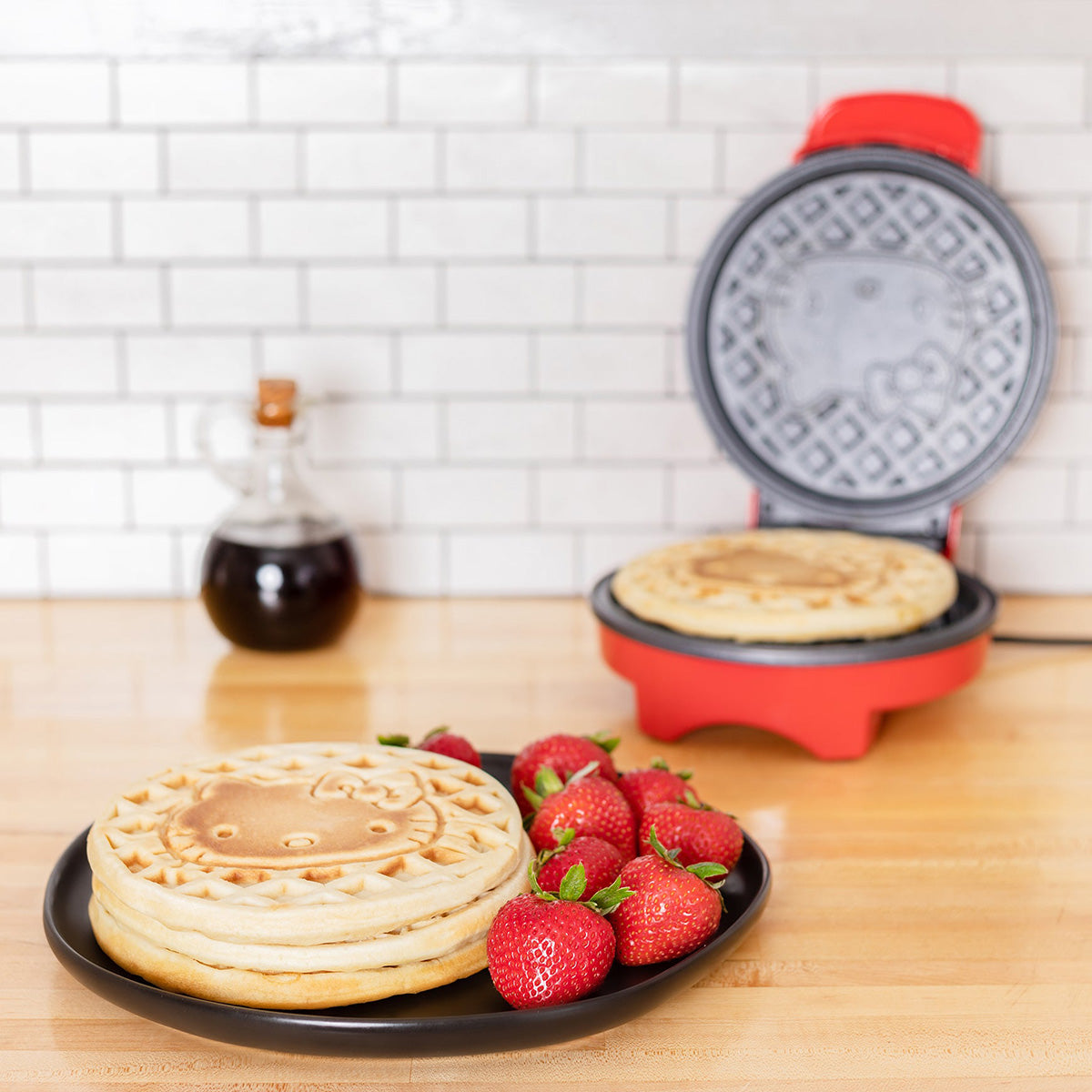 Add a touch of kawaii charm to your breakfast with the Hello Kitty Round Waffle Maker! This compact, non-stick appliance creates adorable Hello Kitty waffles, making mornings extra delightful for fans of all ages. With regulated heating, a weighted lid, and dual indicator lights, it ensures perfect cooking and is versatile enough to prepare eggs, brownies, and sandwiches. Officially licensed by Sanrio, it’s the ideal addition to any Hello Kitty fan’s kitchen and is UL listed for safe use across the US, Canada, and Mexico.