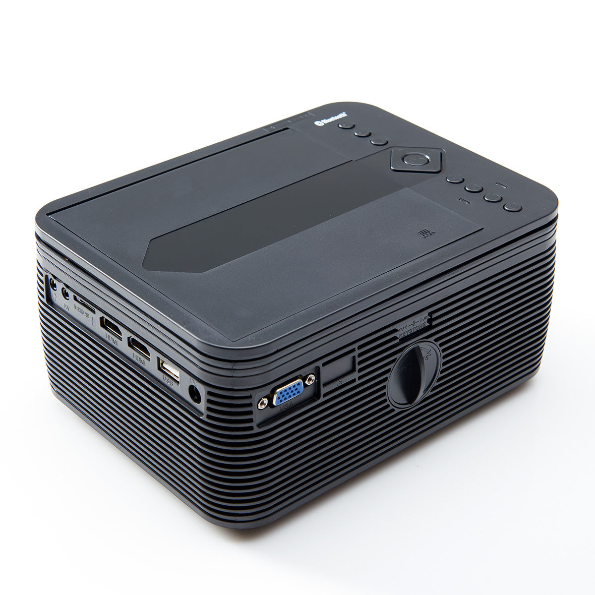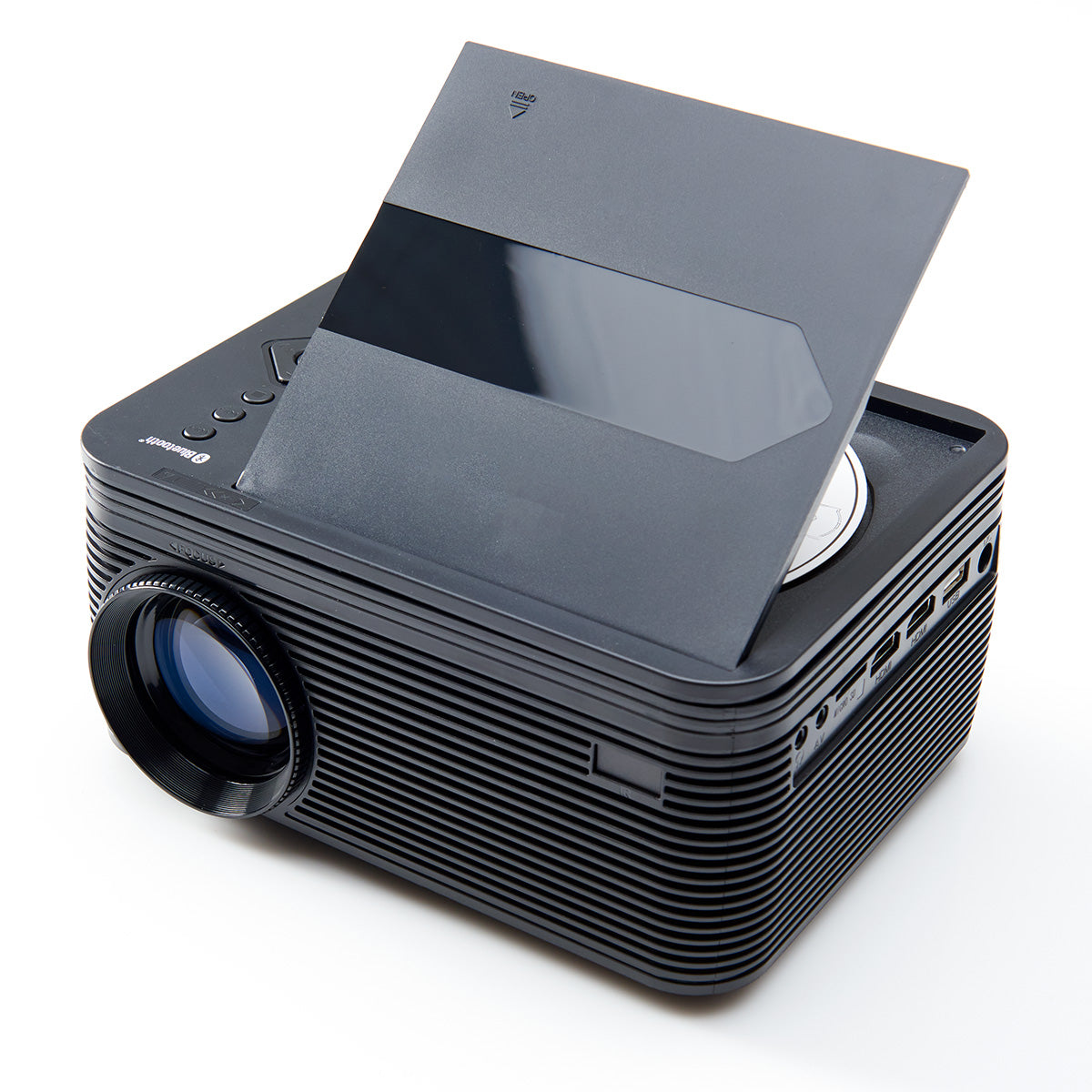 Start a family movie night tradition with the Home Theater Projector with DVD Player. This versatile device projects DVDs onto a wall or screen, and also works with your cable box, game console, Blu-ray player, Roku, Fire Stick, Apple TV, flash drive or memory card. Use the built-in speakers or pair it with your own wireless speakers via Bluetooth. Includes wireless remote control.