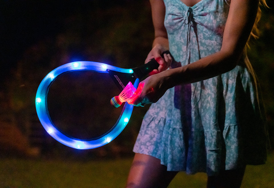 • Set includes 2 LED racquets (1 blue and 1 red) and 2 LED birdies for vibrant play