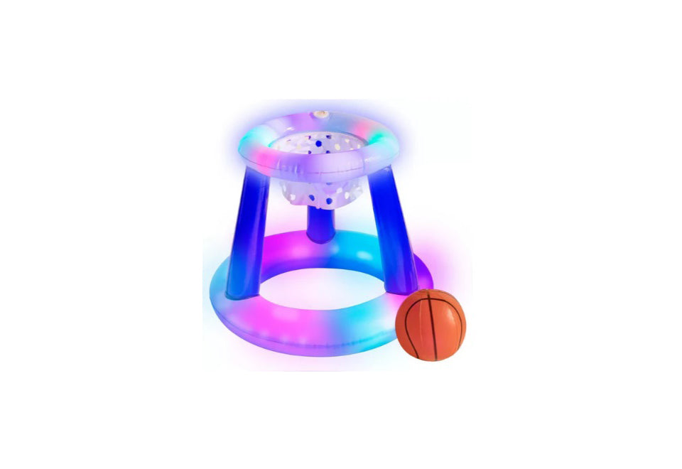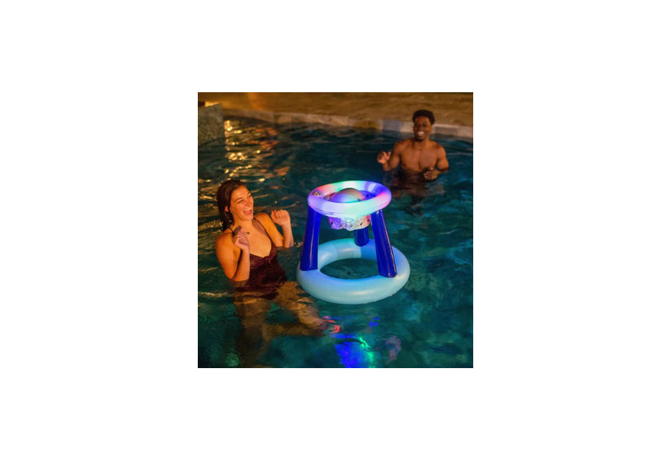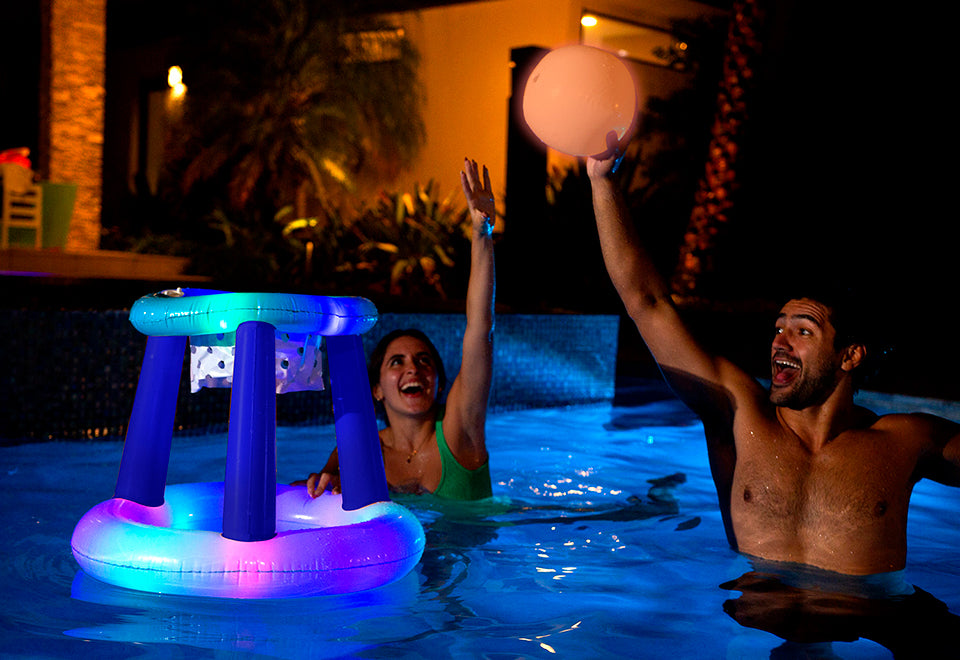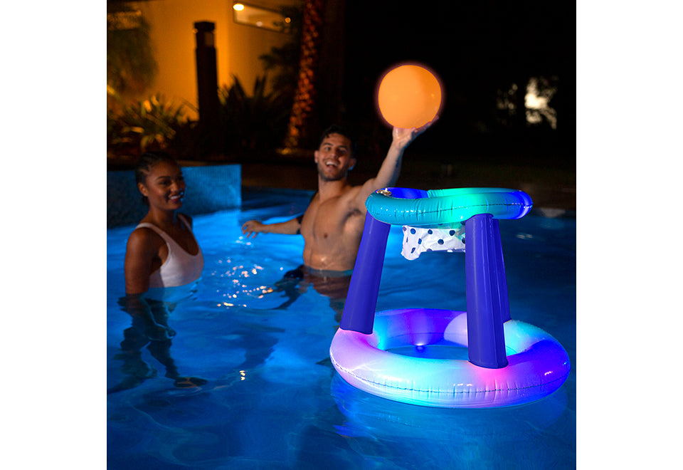 Dive into endless fun with LED Inflatable Pool Basketball, the ultimate addition to your pool party arsenal. Designed for enthusiasts of all ages, this game transforms your pool into an aquatic basketball court that doesn't quit when the sun does. Equipped with vibrant multicolor LEDs, both the hoop and the basketball illuminate, ensuring the game can go on all night long. Suitable for play both in and out of the water, it's perfect for poolside action or lawn fun under the stars.