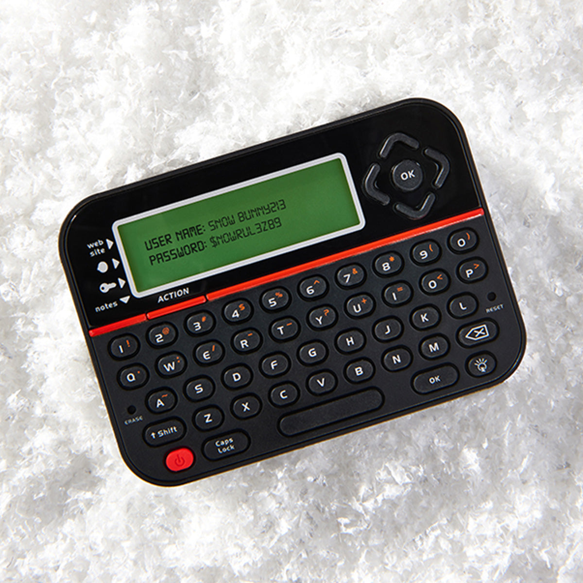 Give yourself peace of mind with the Password Vault. It stores up to 400 logins and passwords that only you can access. Plus, it is not connected to computers, the Internet or wireless networks so it can never be hacked or skimmed by identity thieves.