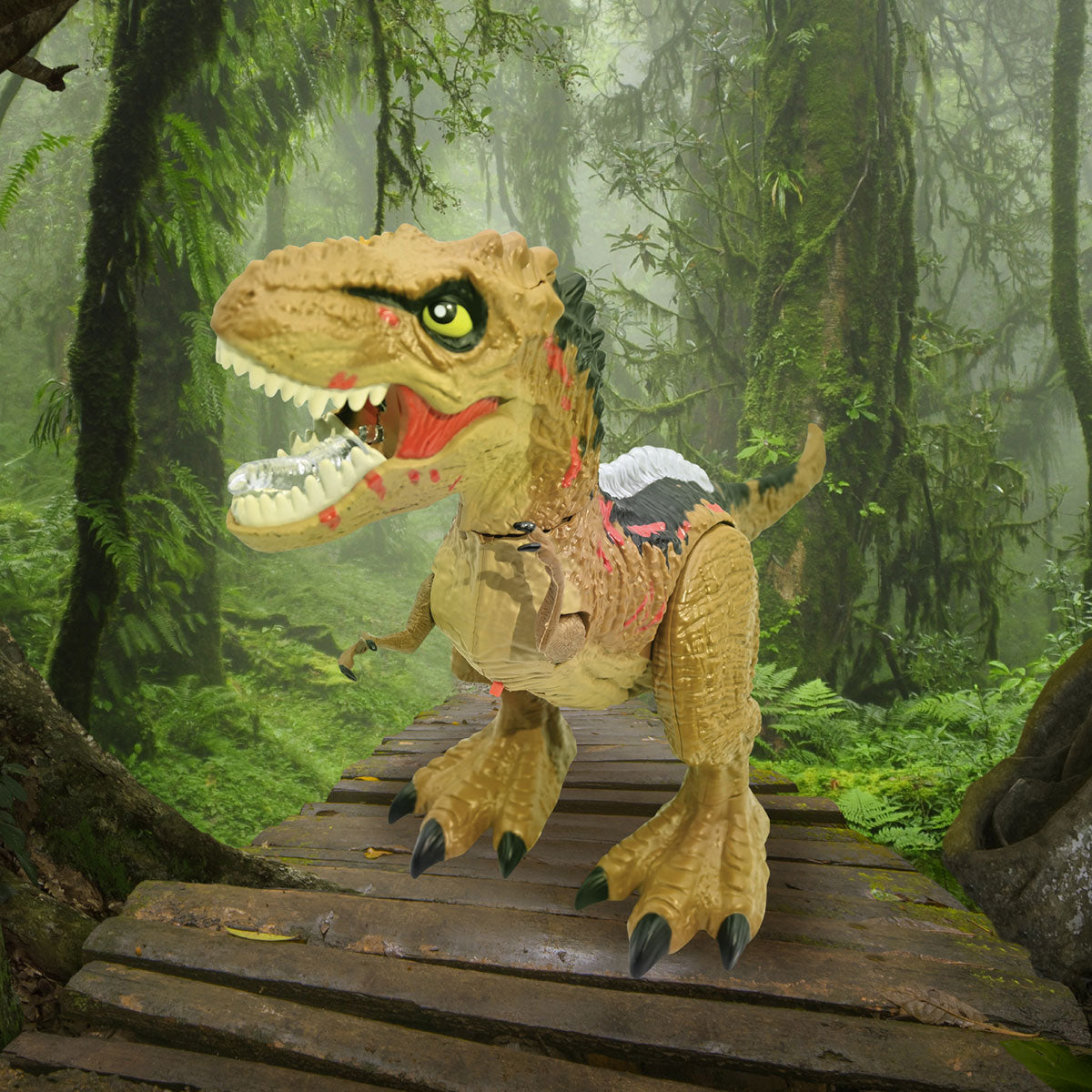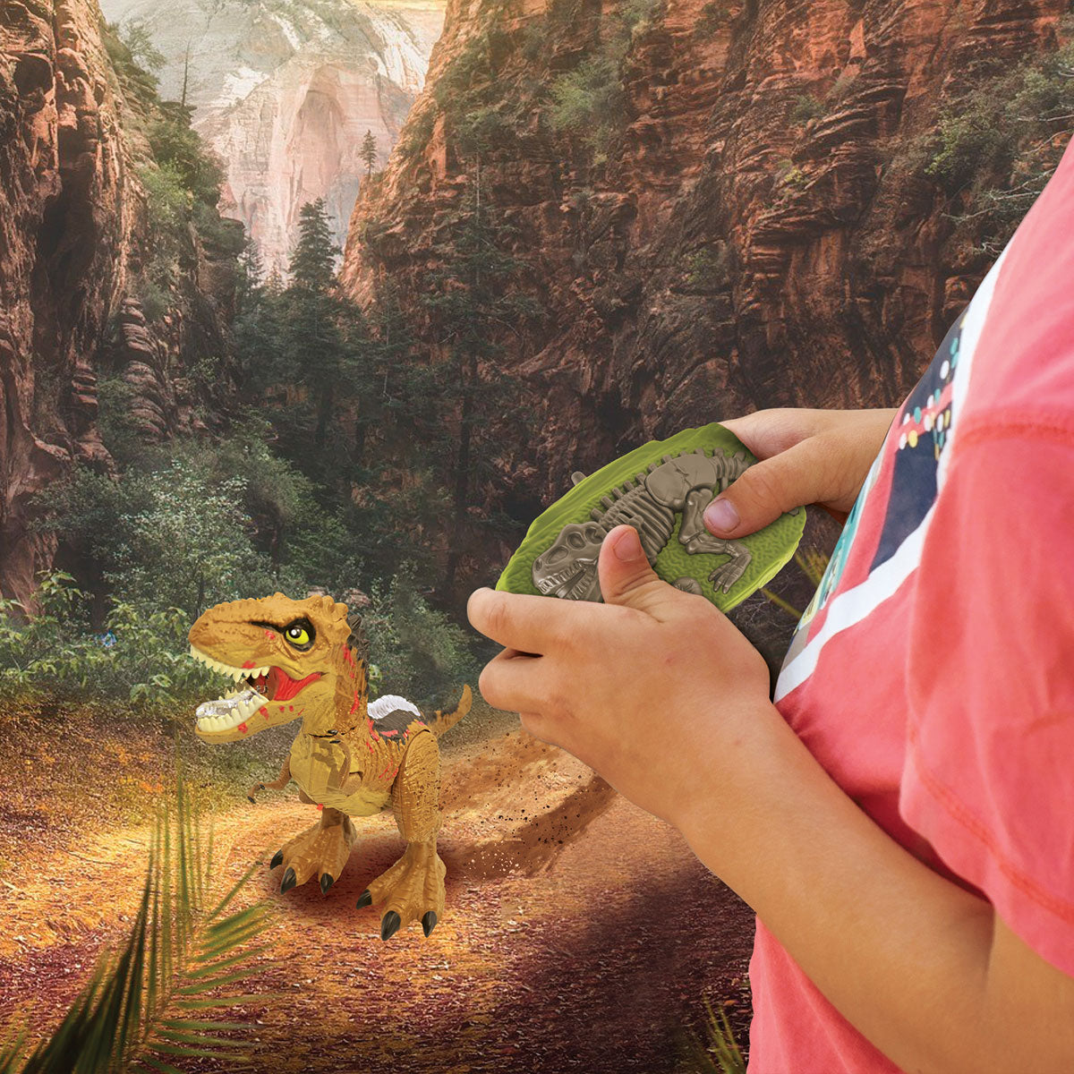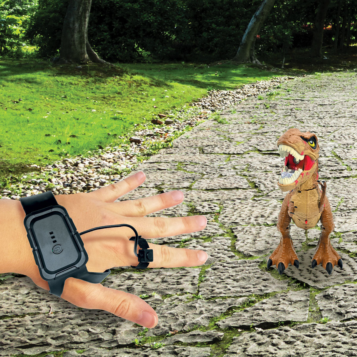 Bring the prehistoric world to life with the RC Dinosaur with Smoke and Lights. This ultra-realistic T-Rex features articulated movements, glowing LED light effects, and authentic roaring sounds for an immersive Jurassic experience. Use the included 2.4 GHz remote control or the gesture-control wristband to guide your dinosaur in any direction and rotate it 360°. Add water to the head and watch it spit smoke for a dramatic, lifelike effect. Perfect for kids who love dinosaurs, this interactive toy sparks creativity, learning, and hours of adventurous play.