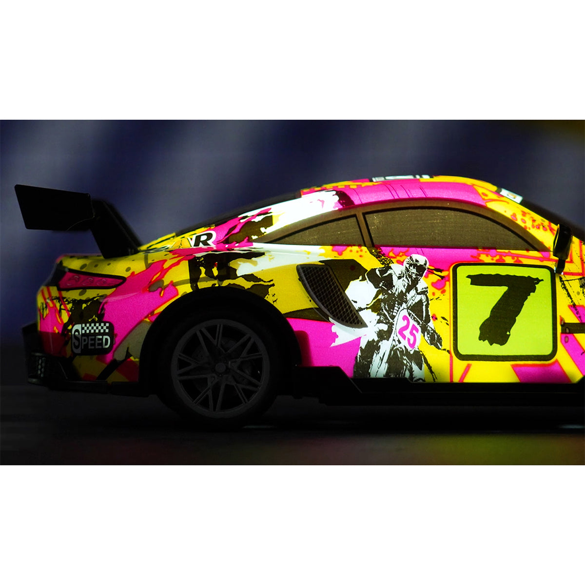 Unleash your inner racer with the Carffiti RC Racing Car, built for high-speed fun and bold style. With full-function remote control, you’ll enjoy smooth steering, quick turns, and precise acceleration. The sleek graffiti-inspired design stands out, while bright LED lights illuminate your path for thrilling night drives. Perfect for kids and RC enthusiasts alike, it even includes an auto pilot demo mode to show off its skills hands-free—guaranteed excitement, indoors or out.