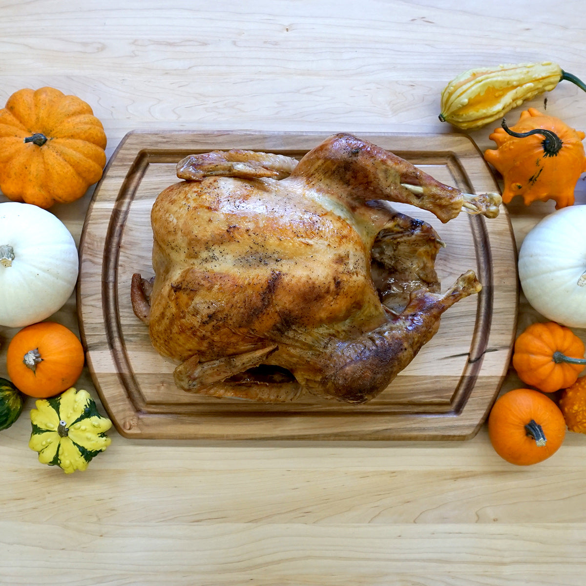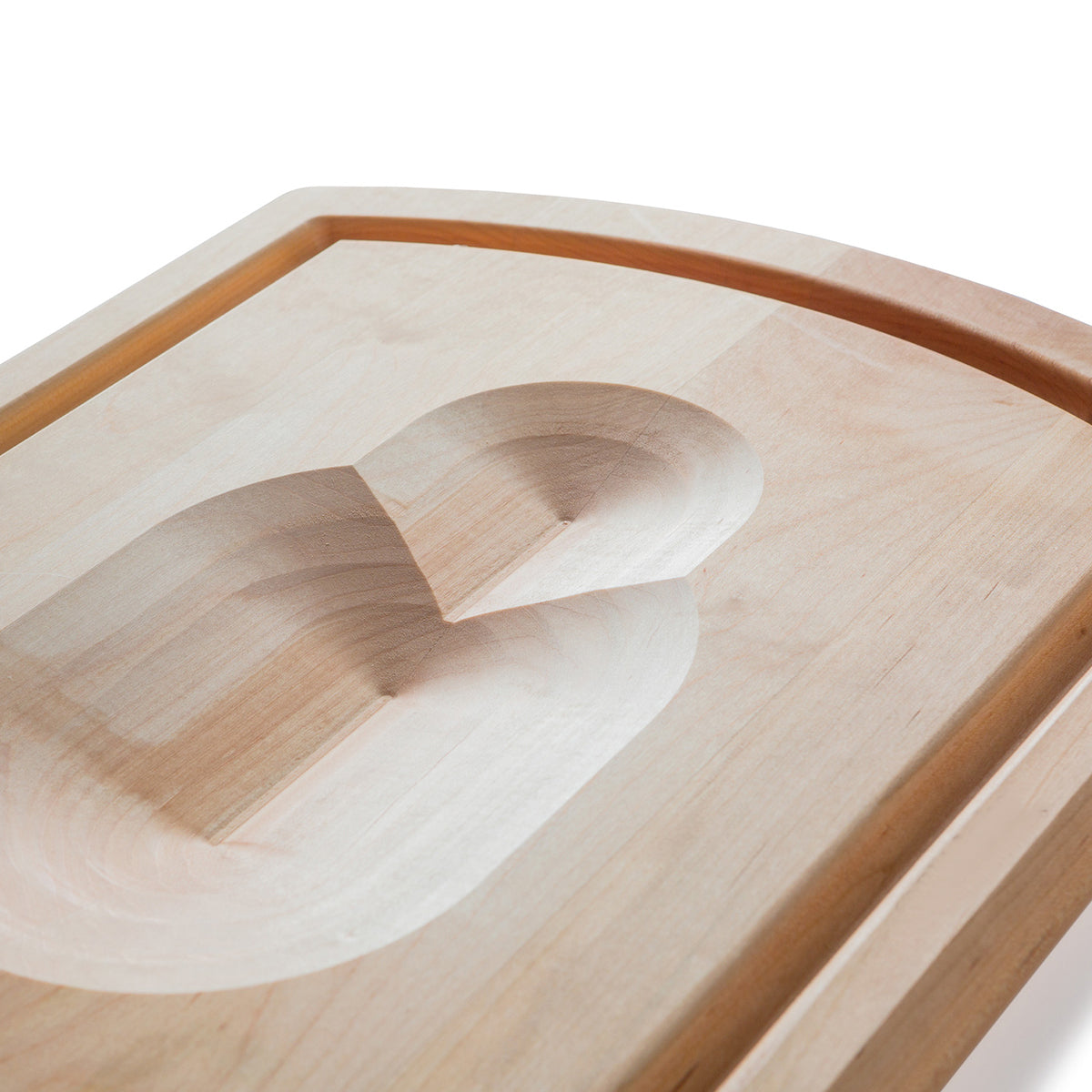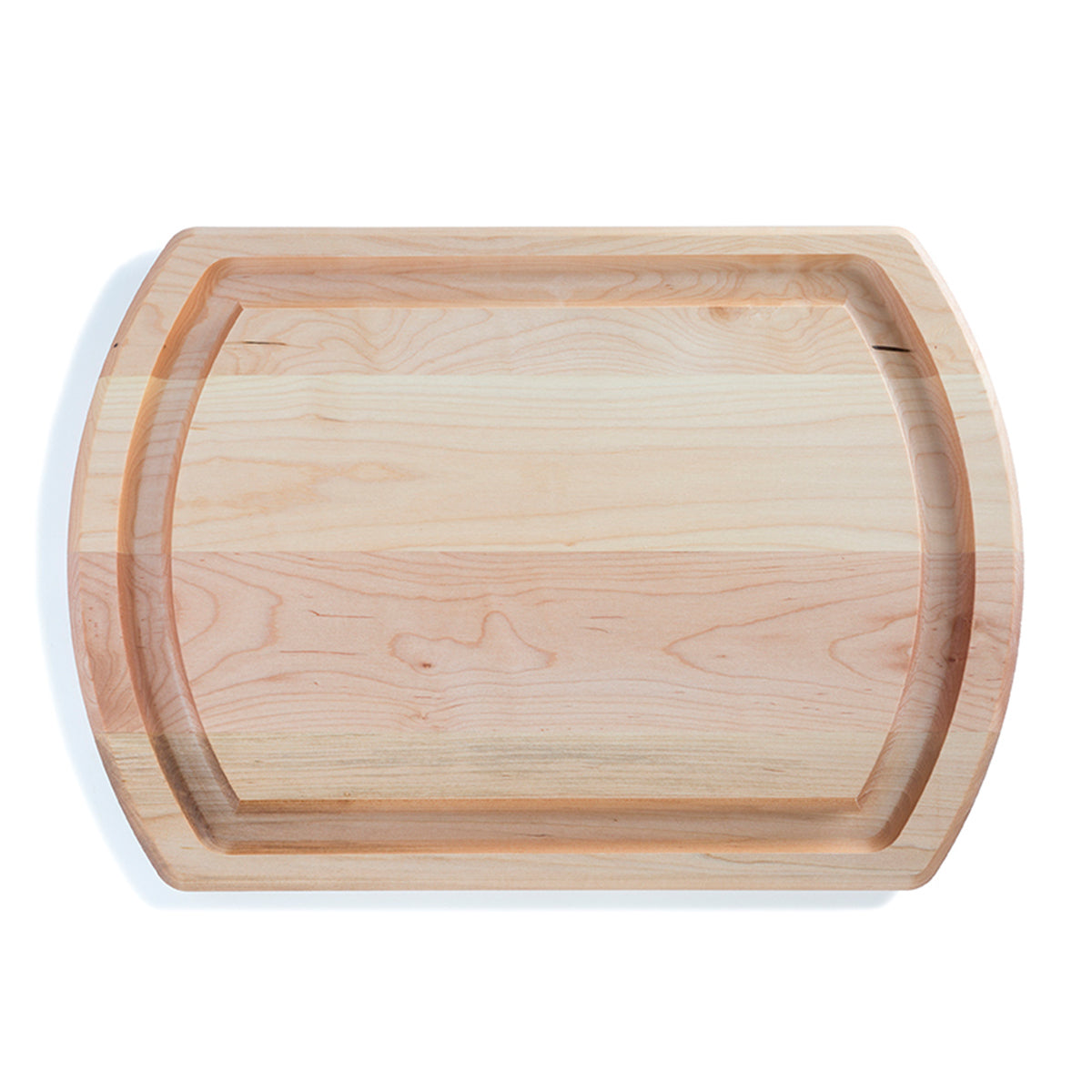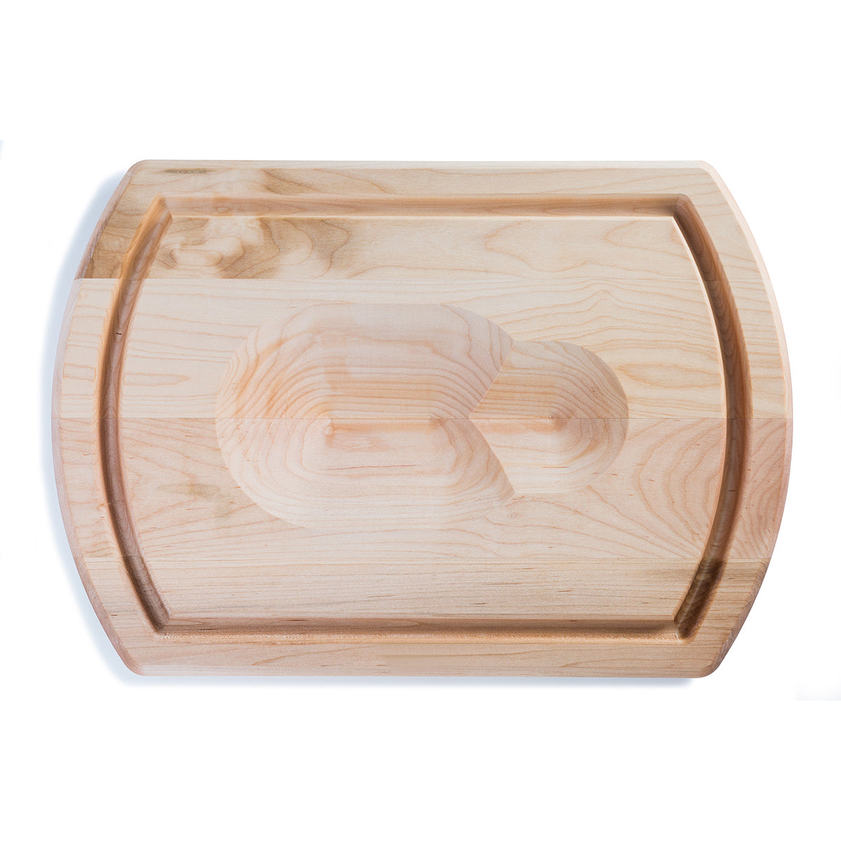 The Reversible Maple Carving Board is designed to provide maximum functionality and durability. This 20'' x 14'' board features two sides: one with a flat surface and juice groove, perfect for slicing vegetables or carving meats, and the reverse side with an indentation that securely holds roasts, turkeys, or other large items in place while carving. Crafted from sustainably harvested maple and finished with mineral oil and beeswax, this board is built to last and is perfect for any kitchen, whether it’s for a holiday feast or a casual meal prep. Backed by a lifetime guarantee, this carving board offers versatility and timeless quality.