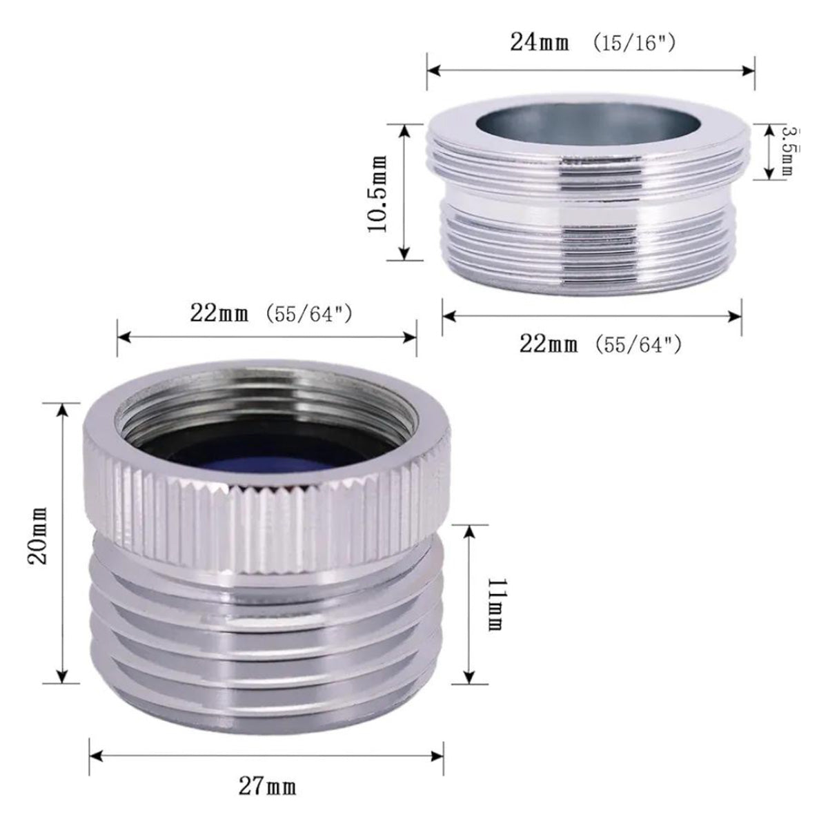 - Female threads (inside the spout): 55/64"-27 (standard for most female-threaded faucets)